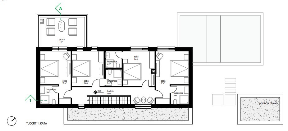 Jedna od soba ima izlaz na krovnu terasu površine 17 m2.