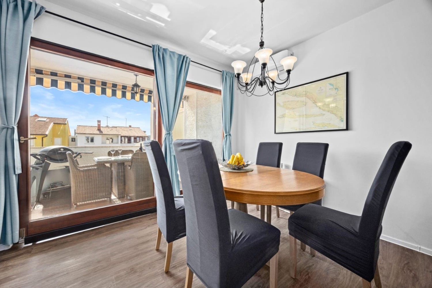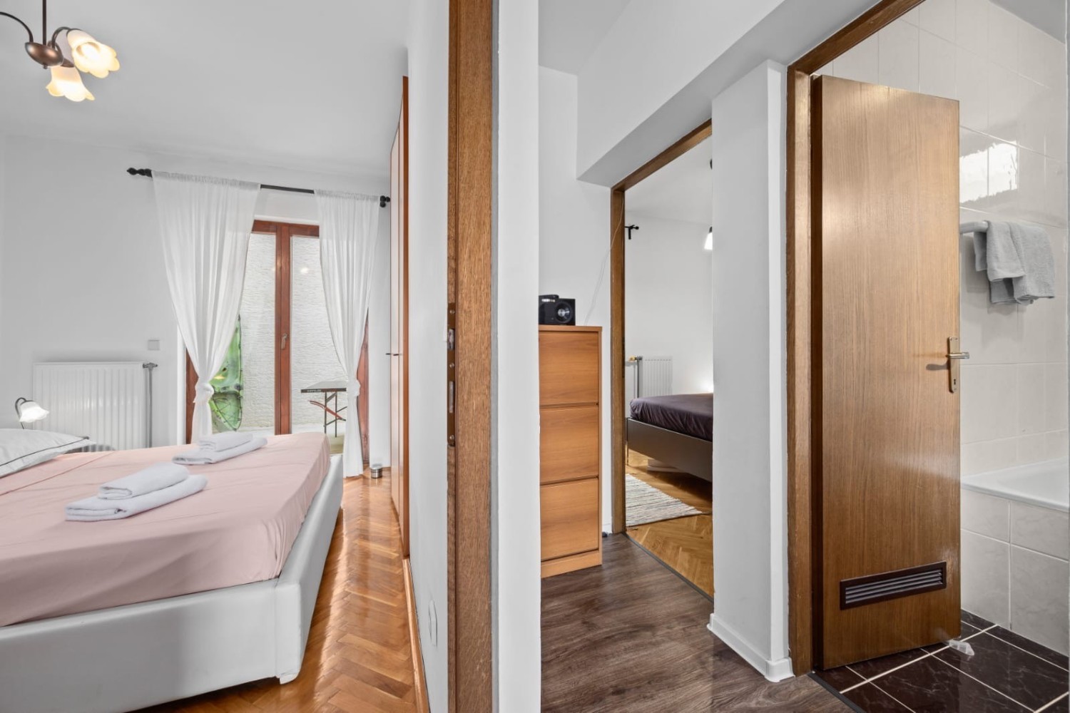 Sastoji se od dvije spavaće sobe iz kojih se izlazi na terasu, kupatila, ostave, kuhinje, blagovaonice i dnevnog boravka iz kog se izlazi na još jednu terasu.