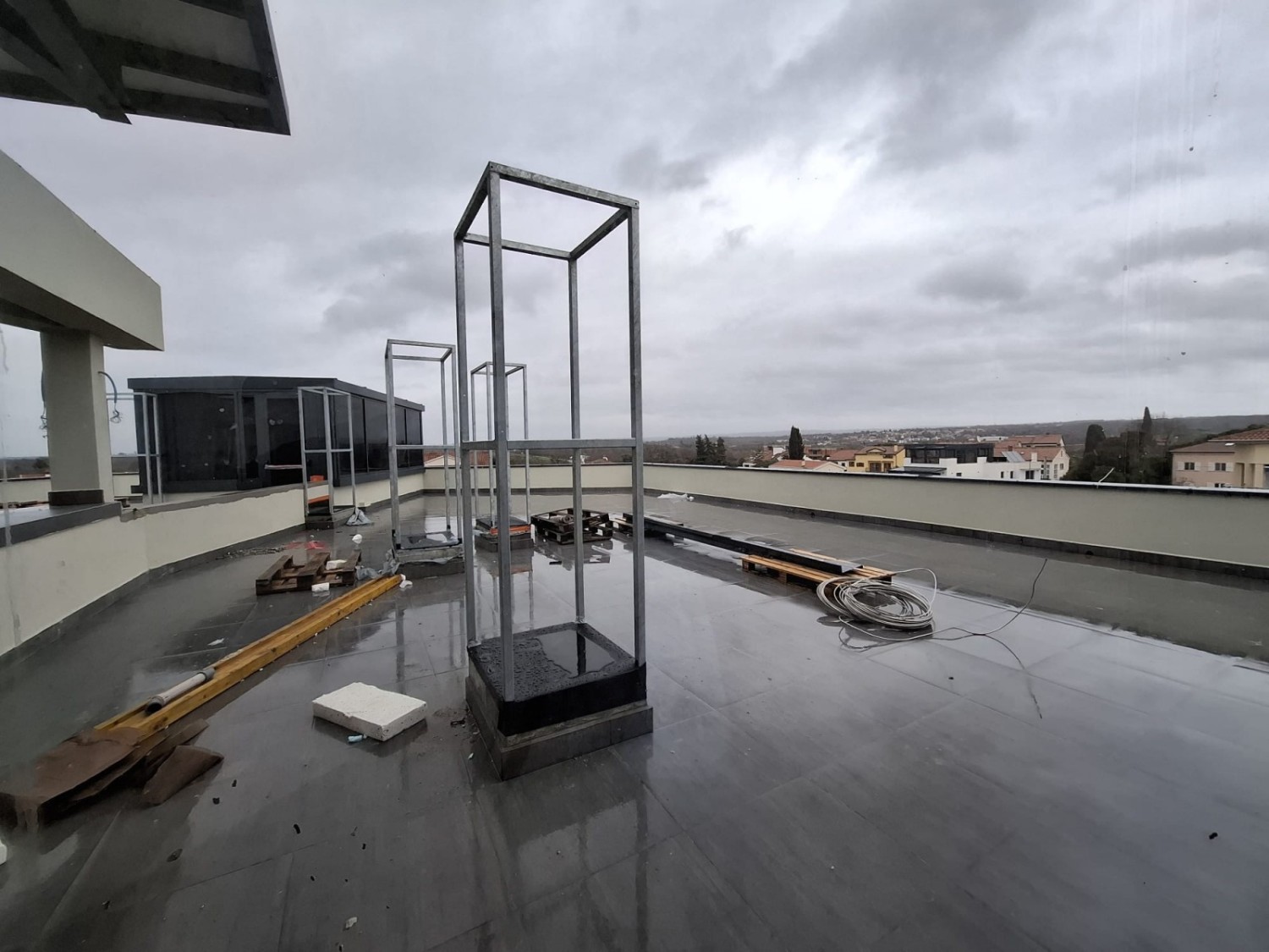 Hodnika, predsoblja, kuhinje+blagovaonice+dnevnog boravaka, 2. kupaonice, 3 spavaće sobe i velike nenatkrivene terase.