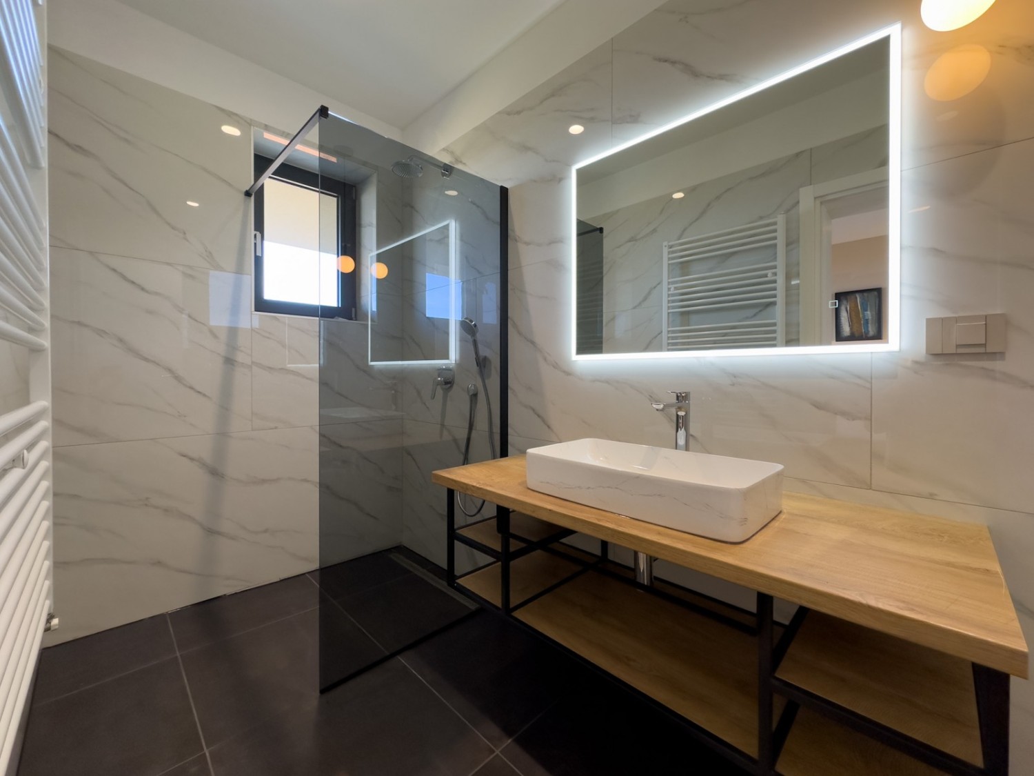 Kuća ima podno grijanje te centralni sustav hlađenja putem dizalica topline.