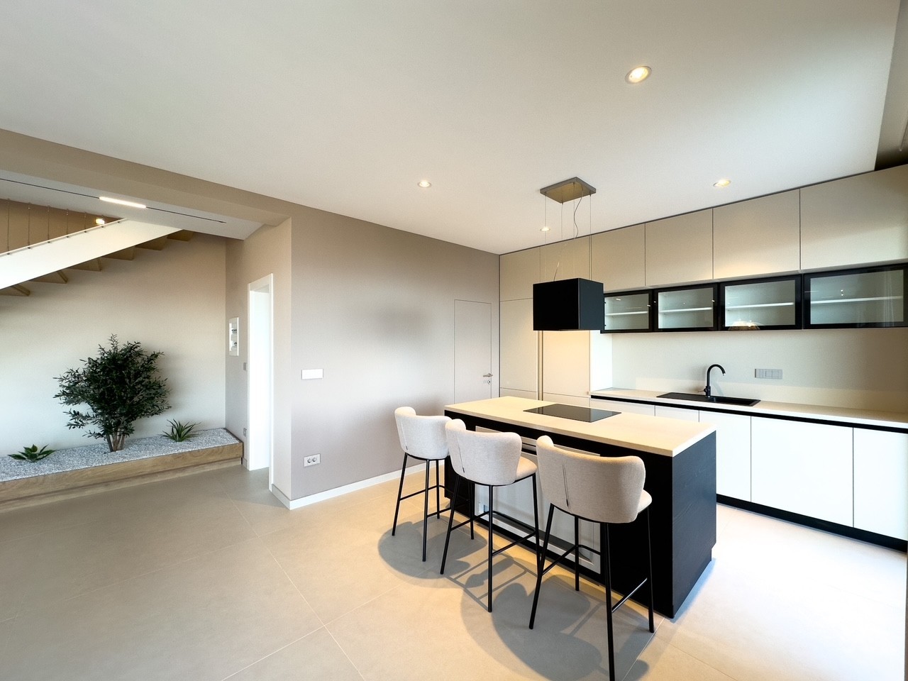 Prizemlje vile sastoji se od velikog "open space" prostora, u kom se nalazi kuhinja sa ostavom, blagovaonica, dnevni boravak te još jedna ostava i toalet.