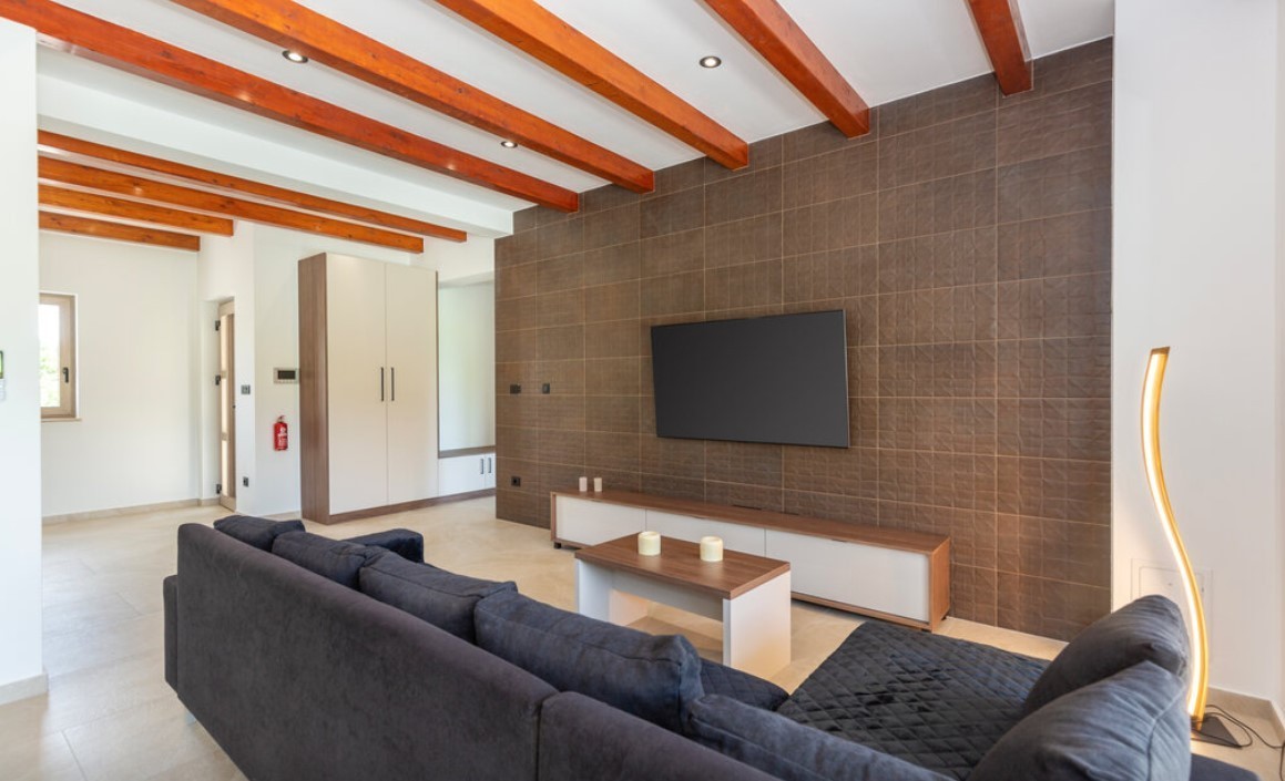 U prizemlju se kuhinja s blagavaonicom te dnevnim boravkom s izlazom na terasu, kupaonica. S terase izlaz na bazen i vanjsku terasu.
