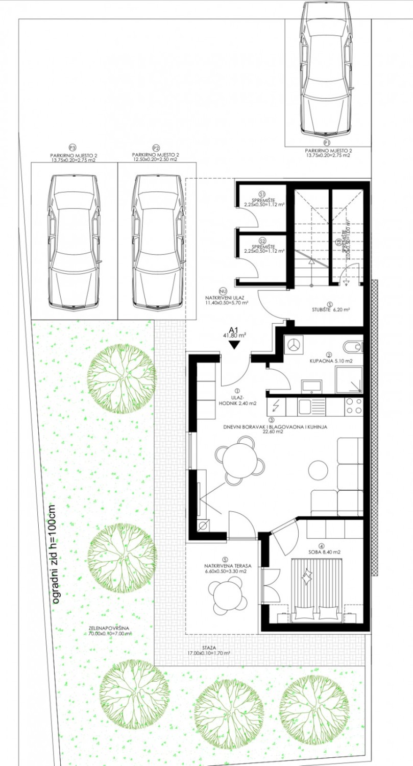 Novi stambeni projekt u mirnom dijelu Pule . Zgrada s tri etaže i ukupno tri stana – po jedan na svakoj etaži.