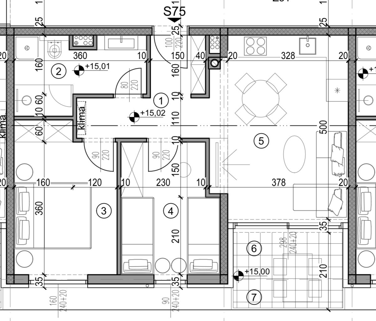 U ponudi je stan na 5. katu višestambene zgrade s liftom. Stan se sastoji od ulaznog hodnika+garderoba, 2 spavaće sobe, kupaonice, kuhinje s blagavaonom te dnevnim boravkom, loggia-om i natkrivenom terasom.