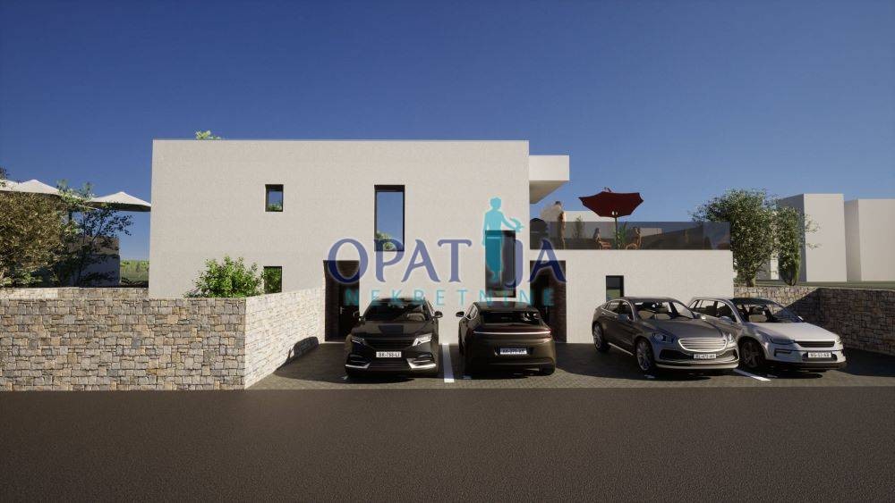 2 spavaće sobe, kupaonice, wc, ostava, kuhinja s blagavaoncom i dnevnim boravkom te velikom terasom koja je dijelom natkrivena te nenatkrivene. Pogled sa terasa pruža se na more i planinu Velebit.