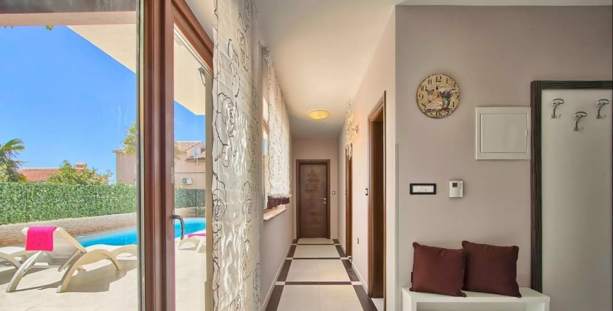 Kuća je izgrađena 2017. godine i ima 270 m2 stambene površine sa ukupno 5 spavaćih soba i 5 kupaonica. Površina parcele je 543 m2 sa velikom natkrivenom terasom s roštiljem, ljetnom kuhinjom i bazenom od 25 m2.