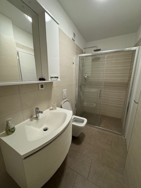 2. kupaonice, dnevni boravak i kuhinja, velika terasa. Jedna spavaća soba sa garderobom i kupaonicom. Stanje kompletno namješten i opremljen klimom i podnim grijanjem