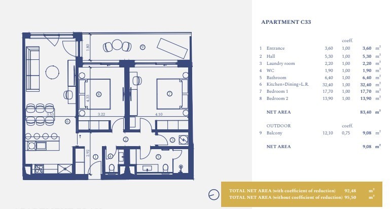 Apartman C-33 (95,5 m2) nalazi se na 2.katu: