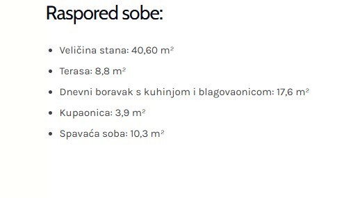 Stan S30, ukupne površine 40,60 m², nalazi se na 1.katu zgrade i sastoji se od: