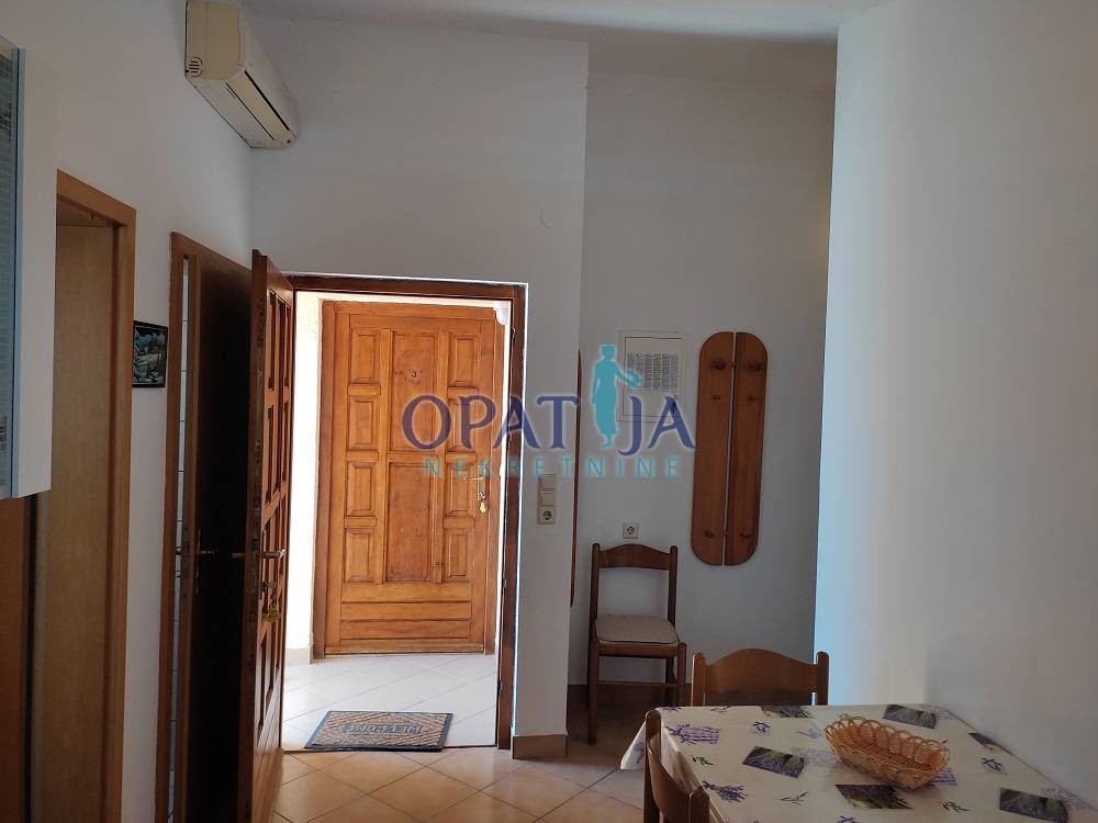 Stan je veličine 54 m² i sastoji se od hodnika, wc-a, 1 spavaće sobe, kupaonice, kuhinje i dnevnog boravka s izlazom na lođu s pogledom na more. Postoji klima uređaj za grijanje i hlađenje, u kratkom zimskom periodu može se priključiti kamin. Za kuhanje su priključeni plin i struja. Prodaje se namještena.