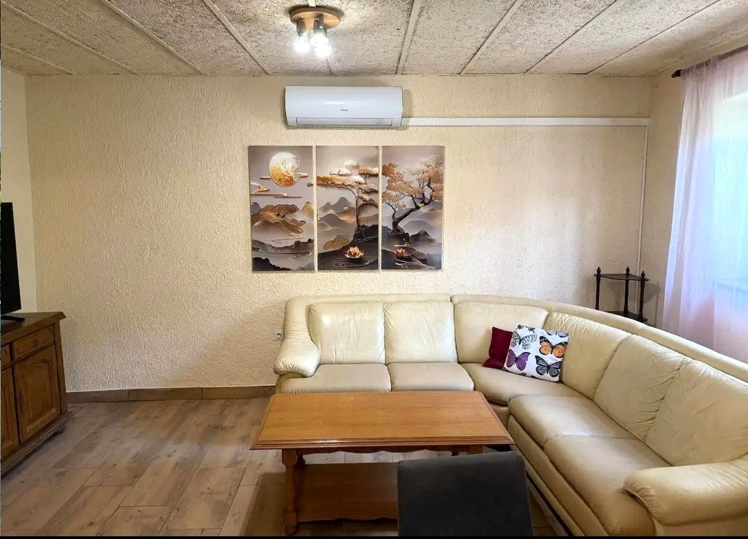 Na prodaju dvojna kuća ukupne površine 190 m2 na zemljištu od 330 m2. Kuća se sastoji od dva odvojena stana povezana unutarnjim stubištem. Ukupno ima 5 spavaćih soba, 2 dnevna boravka s kuhinjom, 2 kupaonice i dodatni toalet.