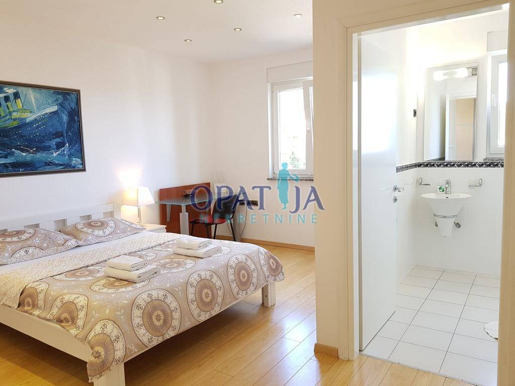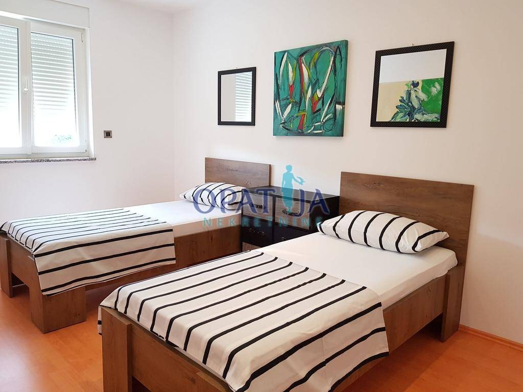 Prekrasdan trosobni stan sa dnevnim boravkom smješten na drugoj etaži urbane vile. Stan je udačjen 200 metara od mora.
