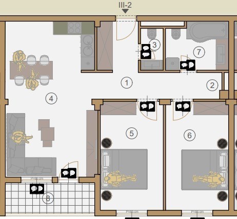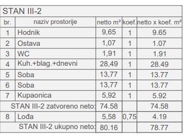 L'appartamento II-2 si trova al 2° piano dell'edificio, con una metratura totale di 80.16 m2 ( neto 78,77 m2), ed è composto da: corridoio, cucina, soggiorno e sala da pranzo, dispensa, 2 camere da letto, WC, bagno e loggia. Il riscaldamento/raffreddamento dell'appartamento sarà fornito con condizionatori Mitsubishi e riscaldamento a pavimento.
