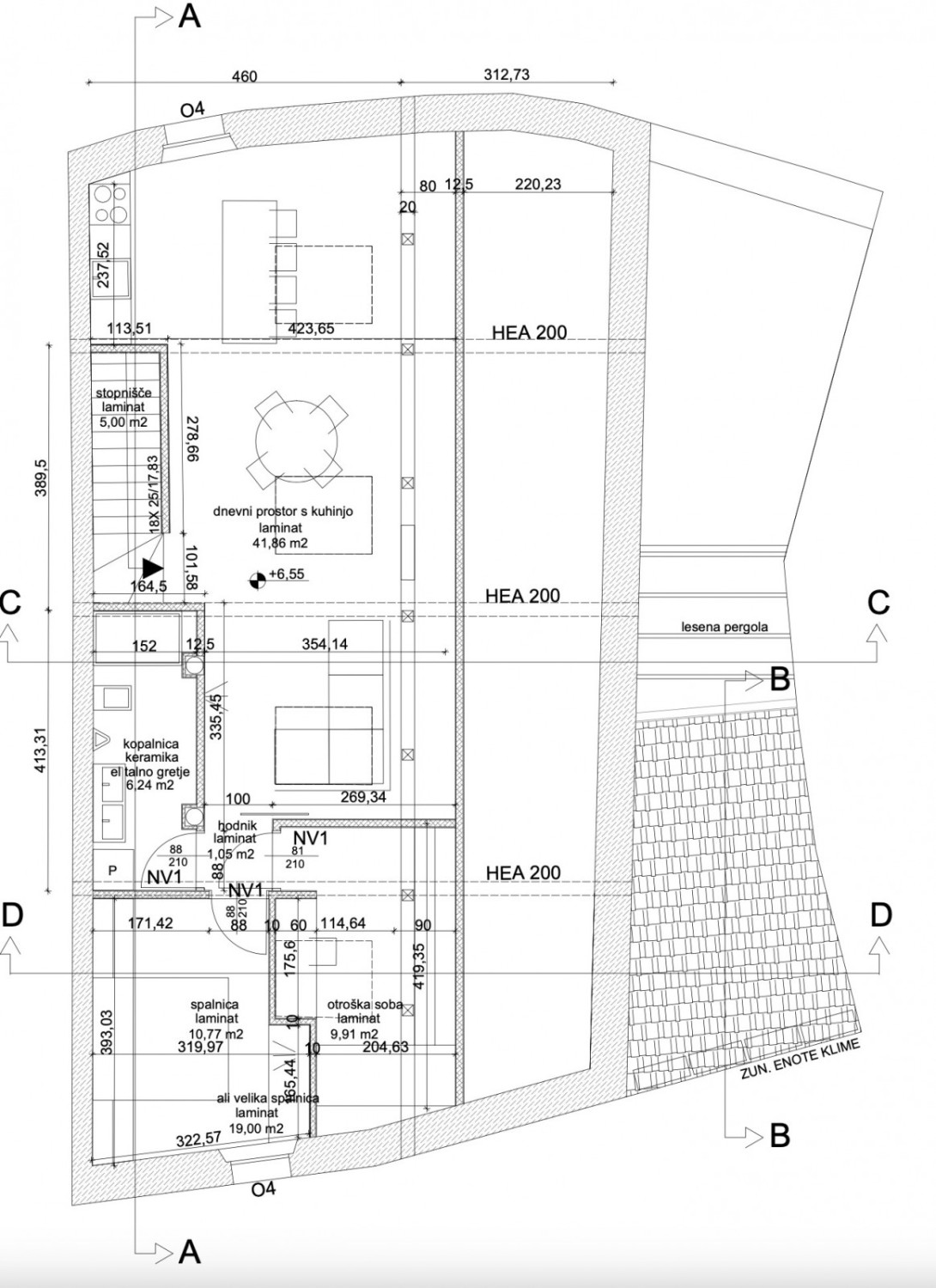 L'appartamento 3 si trova al secondo piano della casa e consiste in un soggiorno con sala da pranzo e cucina, un corridoio, un bagno e due camere da letto.