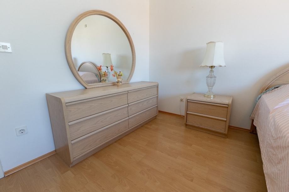L'appartamento è completamente arredato e pronto per essere abitato immediatamente. È composto da due ampie camere da letto, un ampio soggiorno collegato alla cucina, un bagno, un ulteriore piccolo WC, un ripostiglio e un balcone.