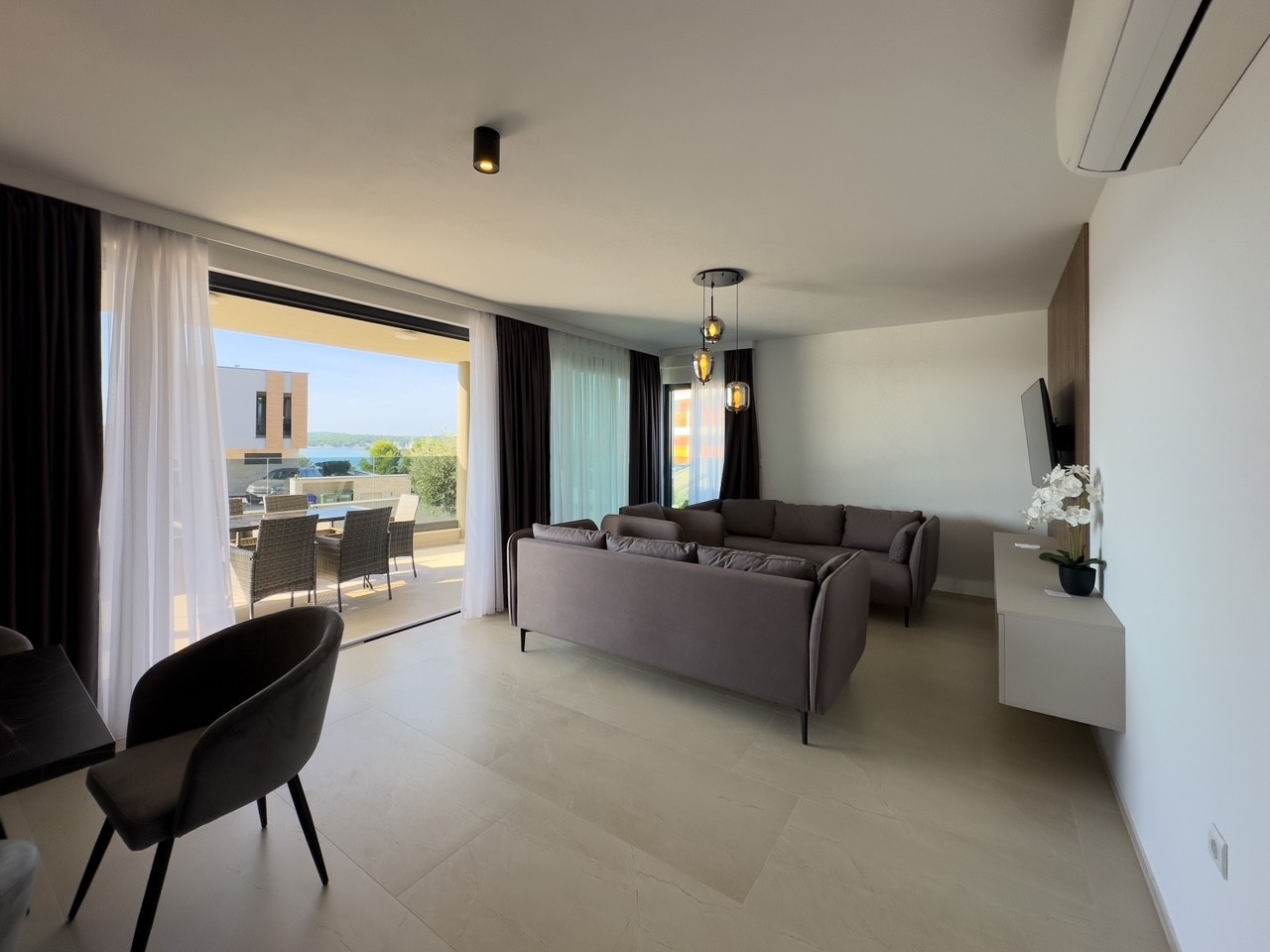 Vendiamo un bellissimo appartamento a Medulin con garage e piscina. L'appartamento è composto da un ampio soggiorno con vista mare, una bella cucina grande. 3 camere da letto, ognuna con il proprio bagno. L'appartamento dispone di piscina e posto auto in garage.