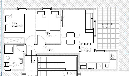 Nel blocco villa E si trova un appartamento di 66,15 m2, situato al primo piano del blocco. L'area interna dell'appartamento è di 45,35 m2 e consiste in un ingresso, cucina, soggiorno e sala da pranzo con accesso alla terrazza, due camere da letto e un bagno. La superficie della terrazza coperta è di 4,5 m2 (9 m2).