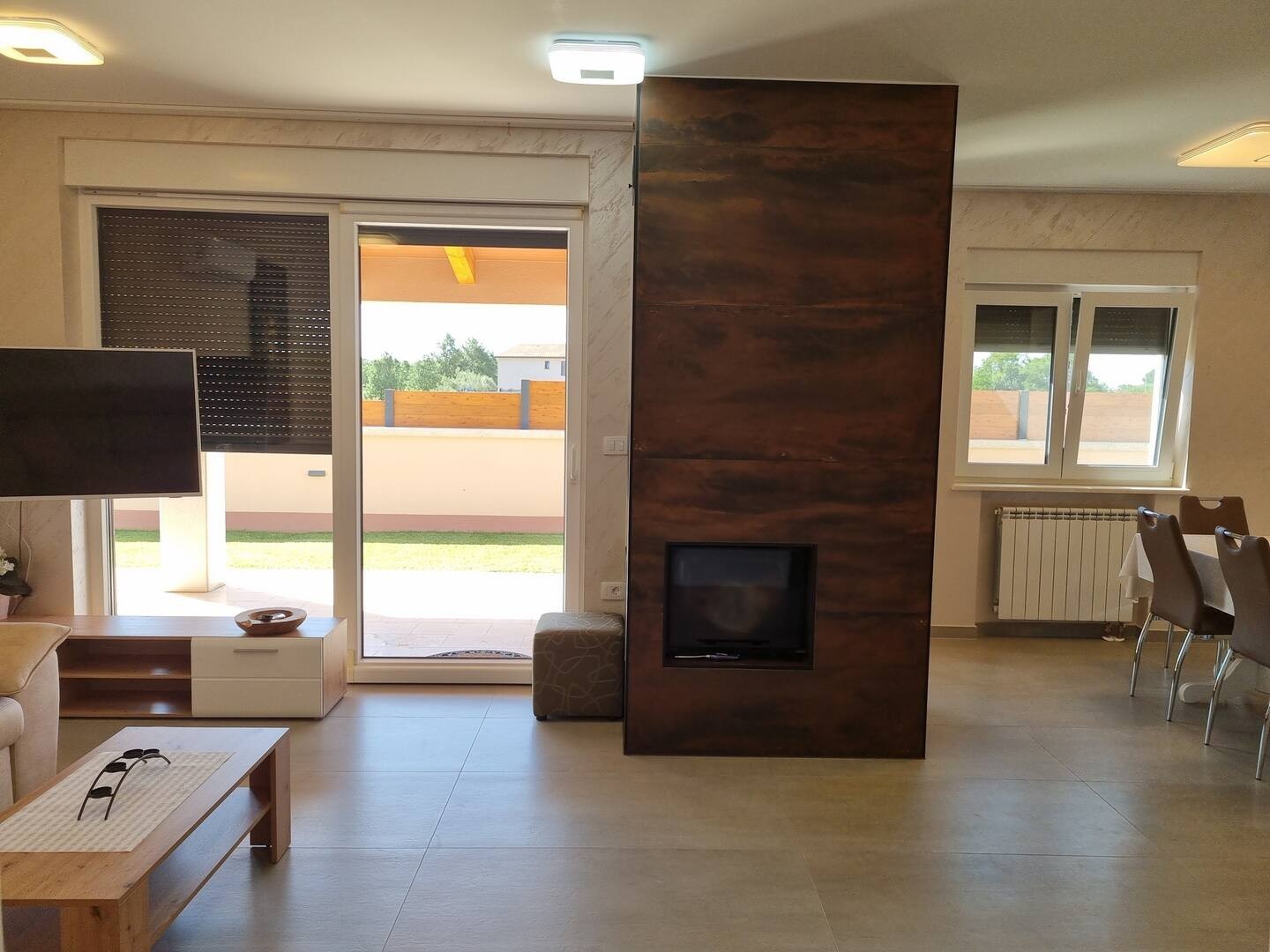 La casa è composta da un grande soggiorno e cucina, due camere da letto, ognuna con il proprio bagno, e un ulteriore servizio igienico. In ogni stanza è presente un climatizzatore. Nel soggiorno c'è un camino con camino.