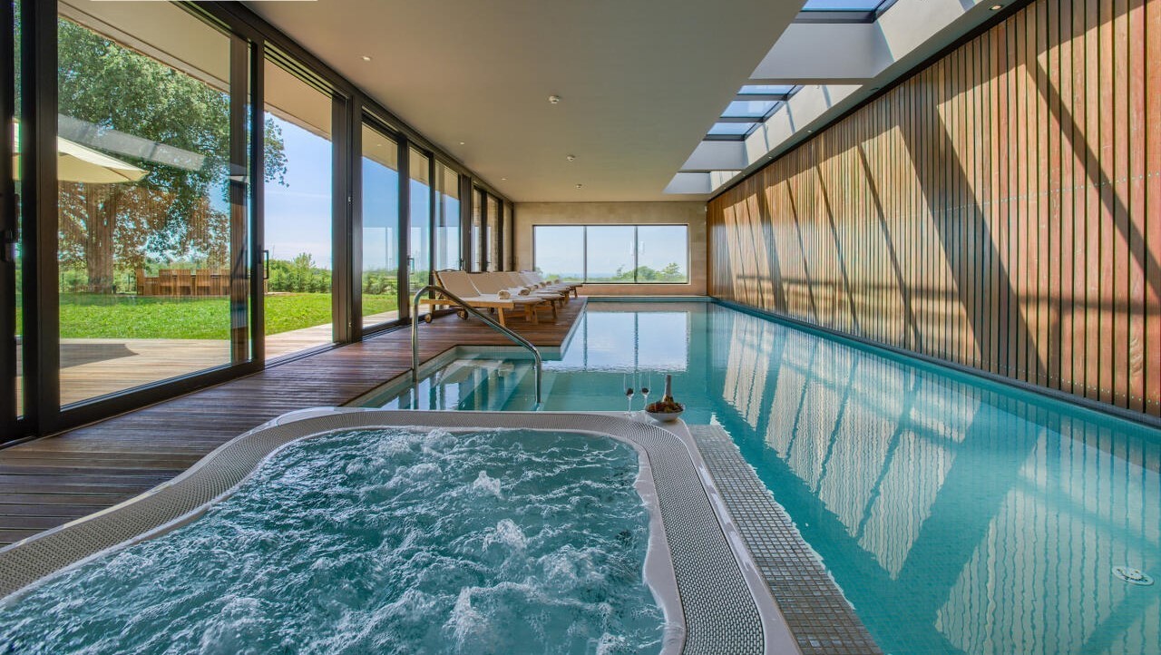 La villa è dotata di una piscina interna, che d'estate si apre e diventa esterna, riscaldata e raffreddata tramite pompe di calore, e di un impianto solare sul tetto, che la rendono altamente sostenibile dal punto di vista energetico.