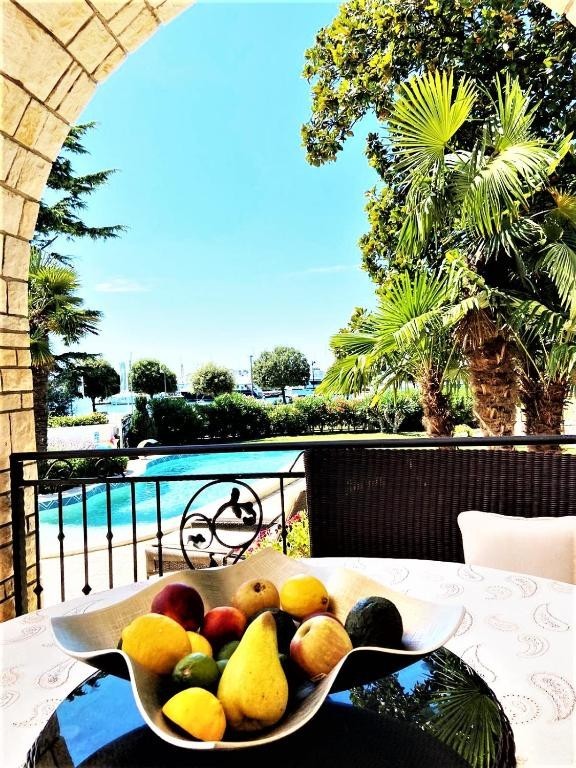 La villa è circondata da alberi e piante mediterranee e offre una vista aperta sul mare. Inestimabile è la posizione della villa - vicino al centro di Umago, ma un ambiente estremamente tranquillo e rilassante pieno di vegetazione mediterranea e profumo di mare, che garantisce privacy e comfort.