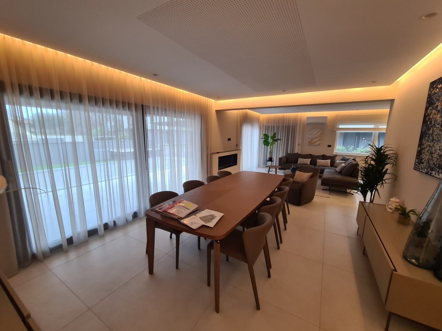 E' composto da un ingresso, un bagno, un ripostiglio nel sottoscala, una cucina con sala da pranzo e un soggiorno. Grandi pareti di vetro che si spalancano e si aprono su un'ampia terrazza con cucina estiva e piscina all'aperto.