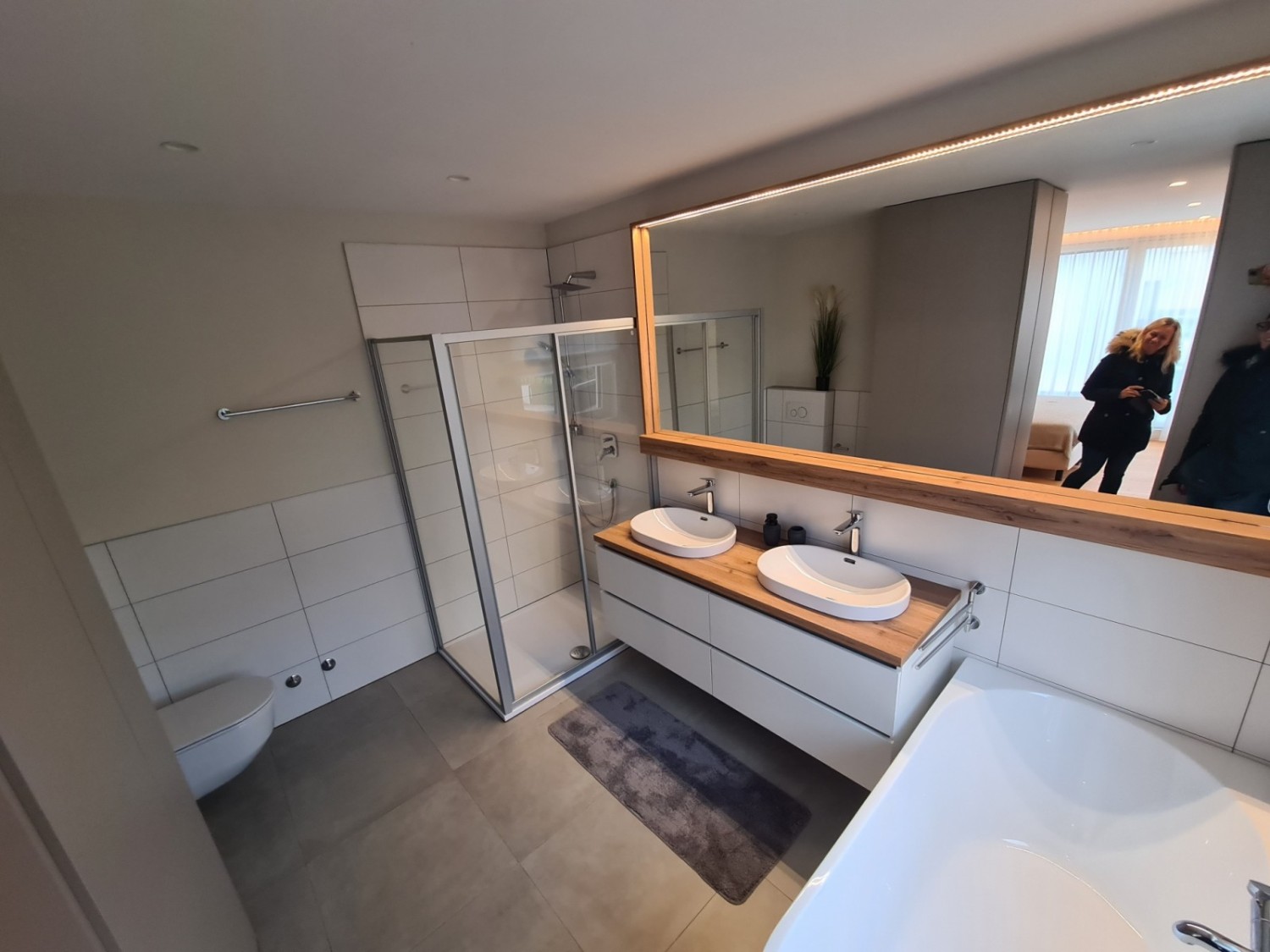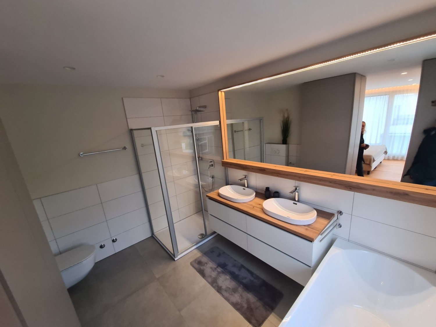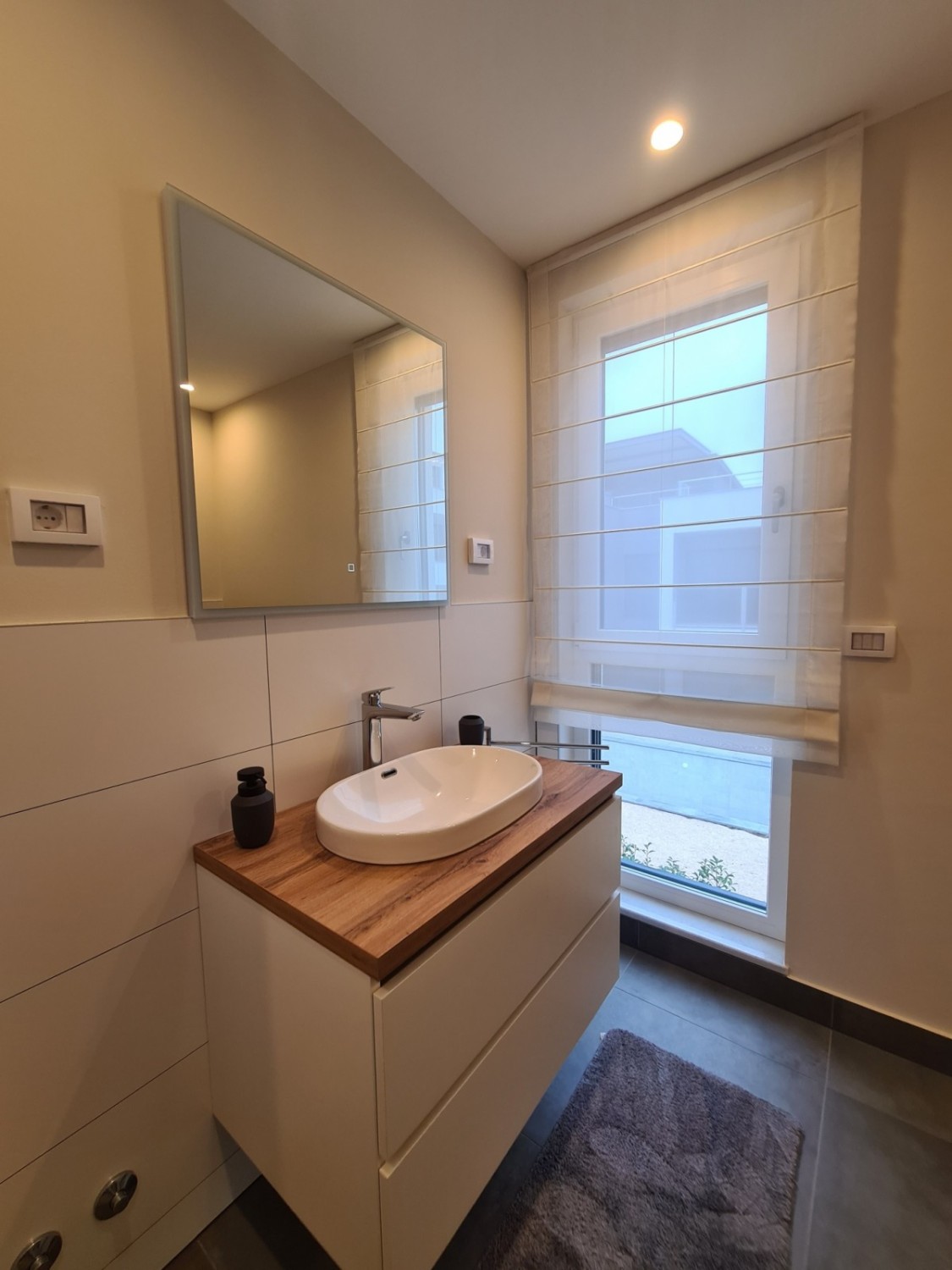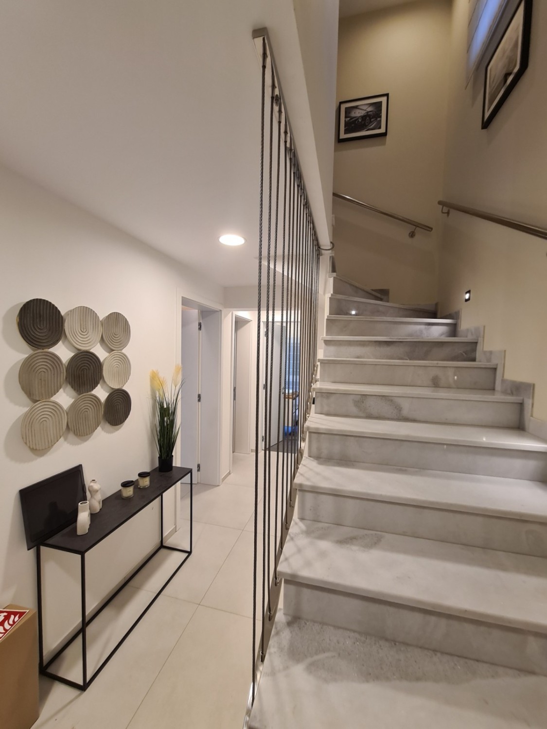 Scale interne conducono al primo piano dove si trovano una lavanderia, due camere più piccole con terrazzi che condividono un bagno, e una camera padronale con un ampio bagno con vasca e doccia.