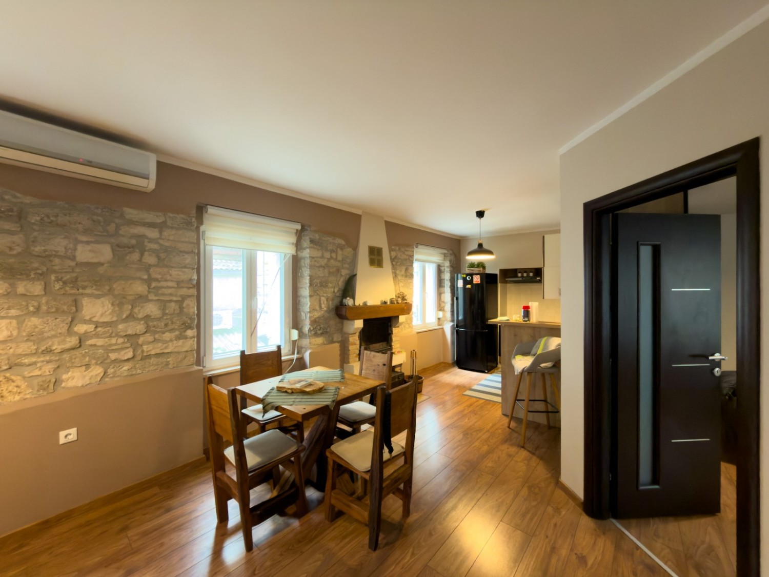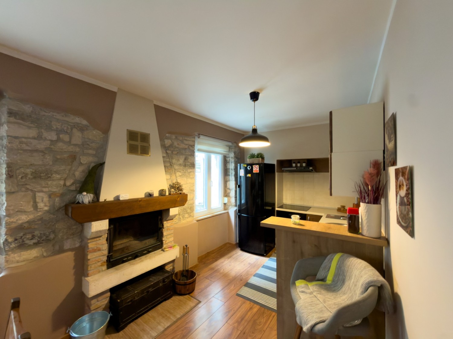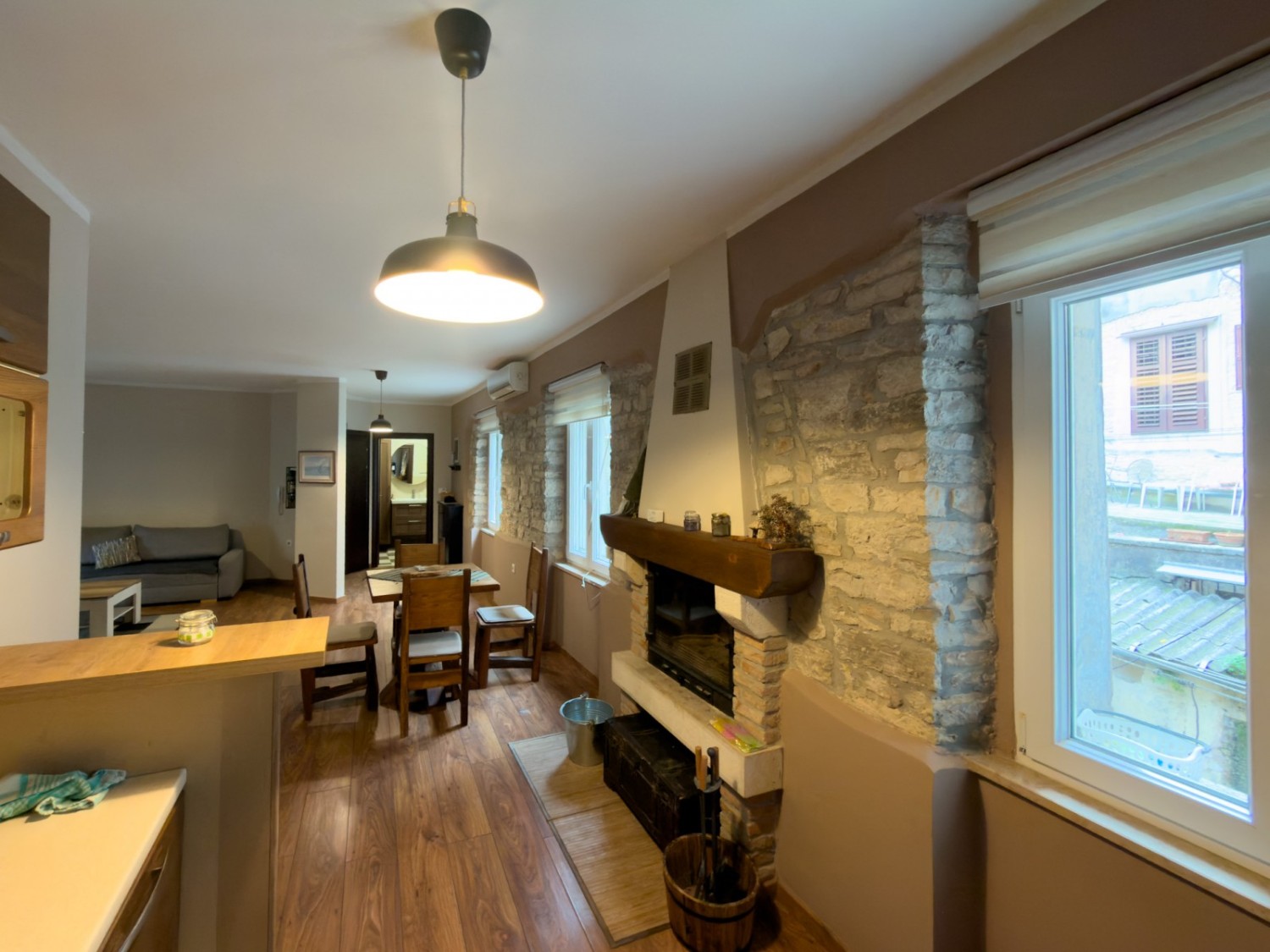 L'appartamento è stato ristrutturato, con un nuovo bagno, infissi in PVC con zanzariere, aria condizionata e un camino funzionante.