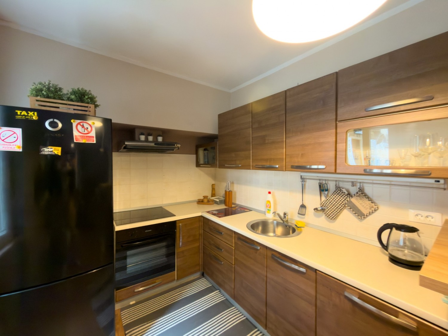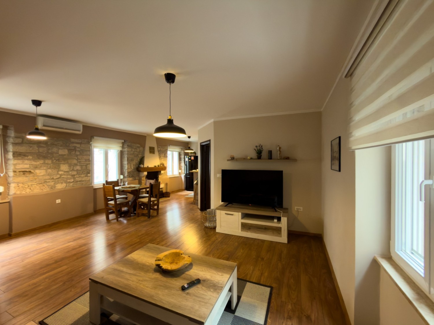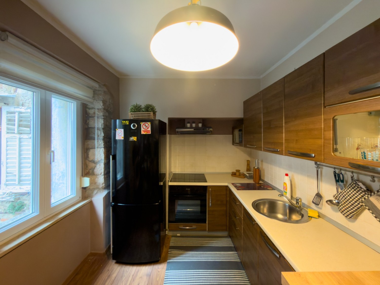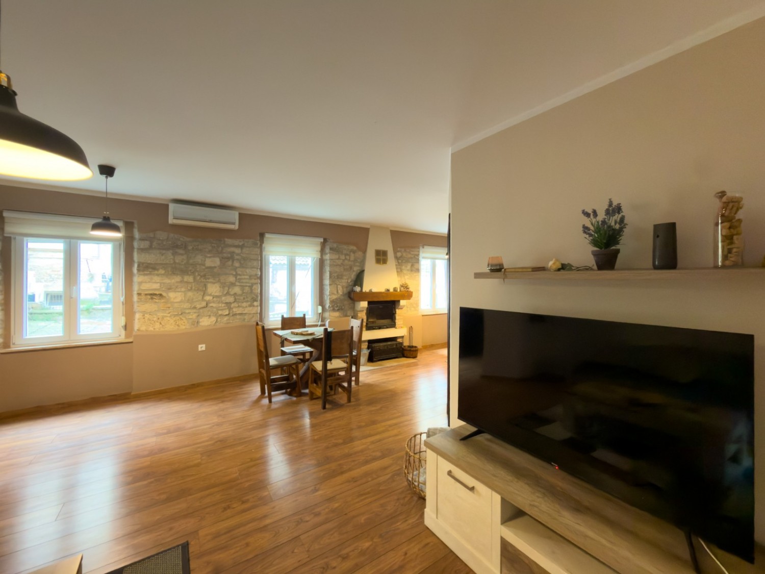 L'appartamento è stato ristrutturato, con un nuovo bagno, infissi in PVC con zanzariere, aria condizionata e un camino funzionante.