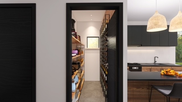 Il giardino curato include una piscina di 27 m² e una cantina con camino di 29 m², che funge anche da cucina estiva, con grandi pareti in vetro scorrevoli.