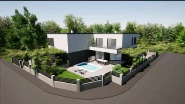 Liznjan, una casa nella fase iniziale di costruzione, è una casa duplex con piscina. Tipologia moderna con tetto piano, superficie abitabile 120 mq su due piani.