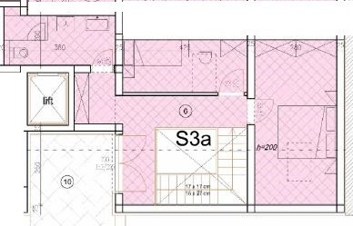 È disponibile un appartamento su due livelli situato al 2° piano con soppalco, di una superficie totale di 95,84 m², composto da corridoio, cucina con sala da pranzo, soggiorno, 3 camere da letto e 2 bagni, oltre a un loggiato. Al piano inferiore (2° piano) si trovano il corridoio, il soggiorno con cucina e sala da pranzo, 2 camere da letto e un bagno, mentre al piano superiore (soppalco) si trova un'altra camera da letto e un ulteriore bagno. All'appartamento è assegnato un posto auto coperto di 4,47 m² incluso nel prezzo.
