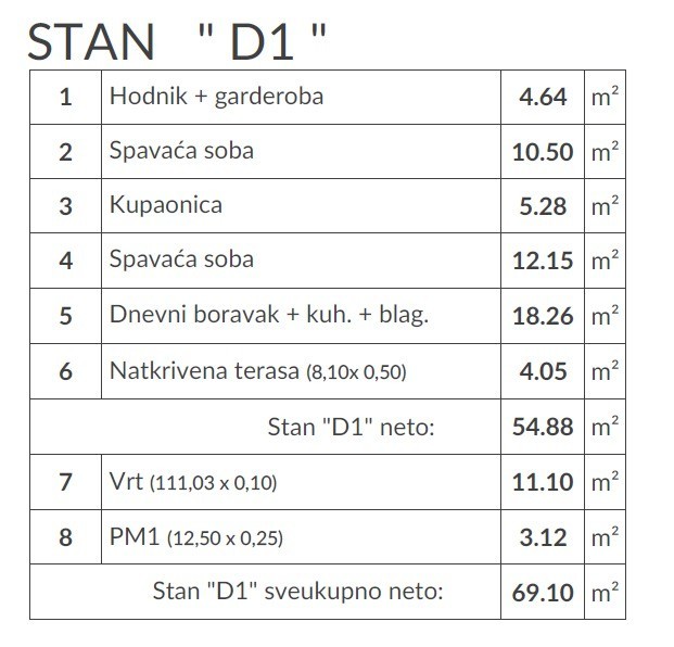 SUPERFICIE NETTA TOTALE - 69,10 m²