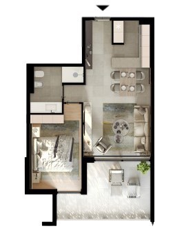L'appartamento S52, di superficie totale di 58,80 m², si trova al piano terra dell'edificio e si compone di: