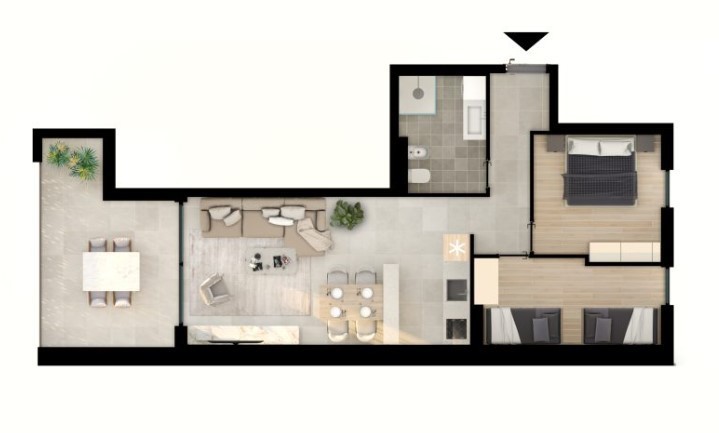 luminoso soggiorno con cucina e zona pranzo a pianta aperta