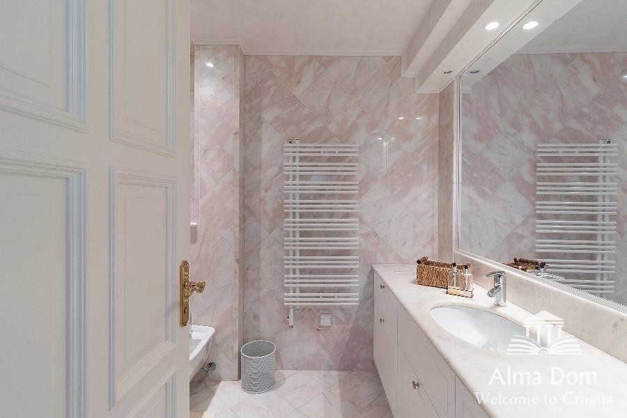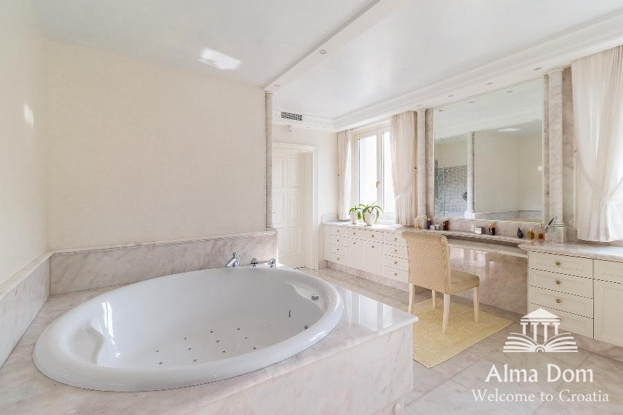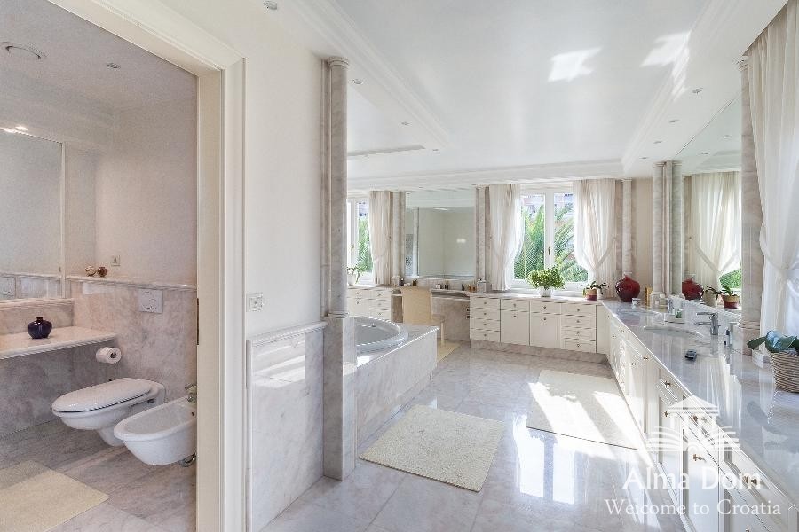 La villa è costruita con materiali di alta qualità come marmo e granito.