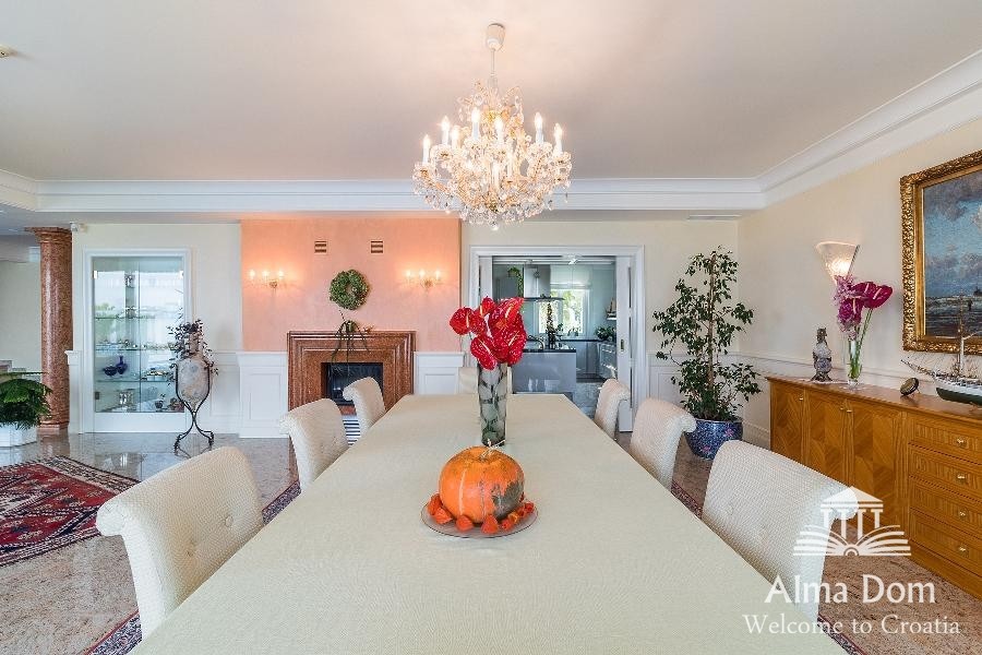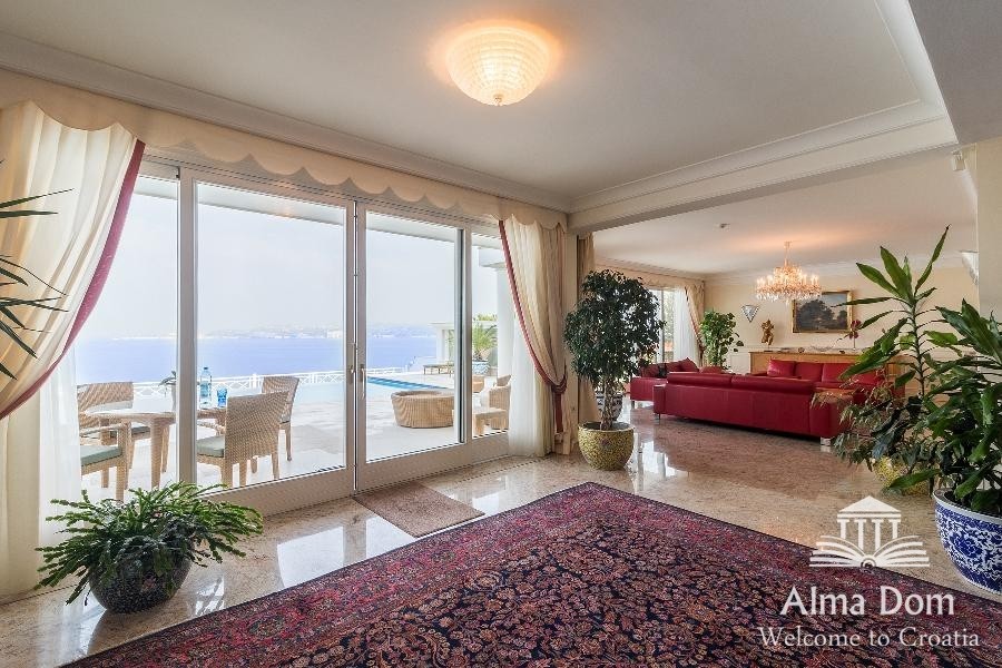 Questa splendida villa da 1 000 m2 offre viste panoramiche mozzafiato sulle coste slovene e italiane e sulle Alpi austriache.