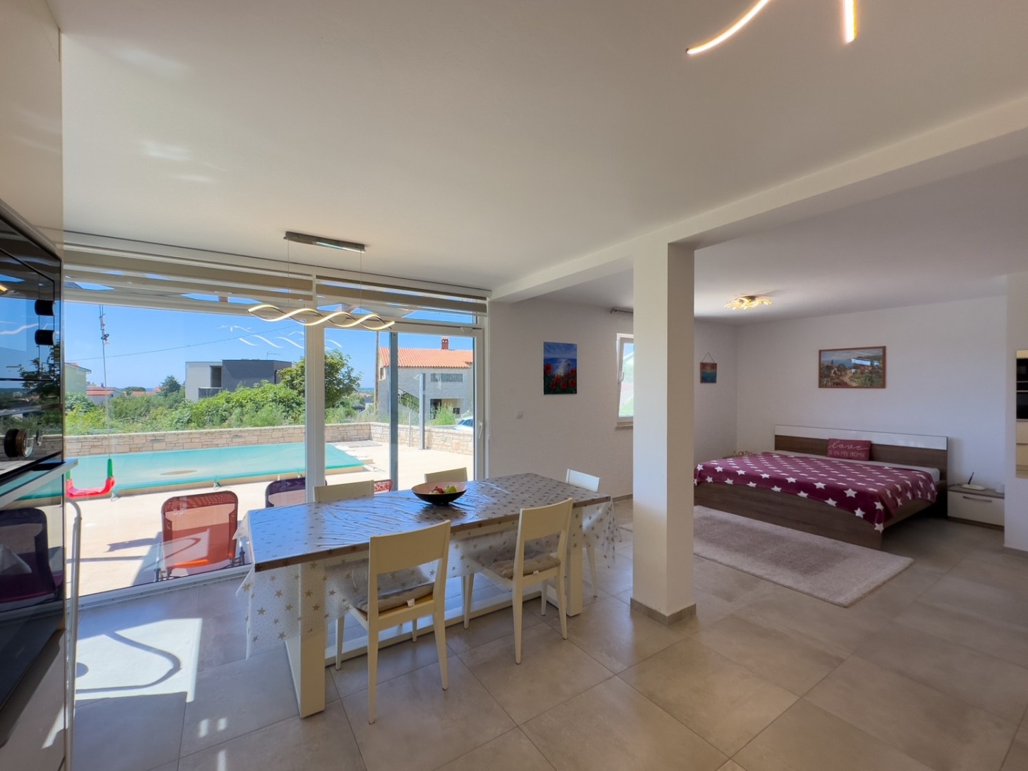 Si compone di due camere da letto, un bagno, una cucina con sala da pranzo e un ampio soggiorno.