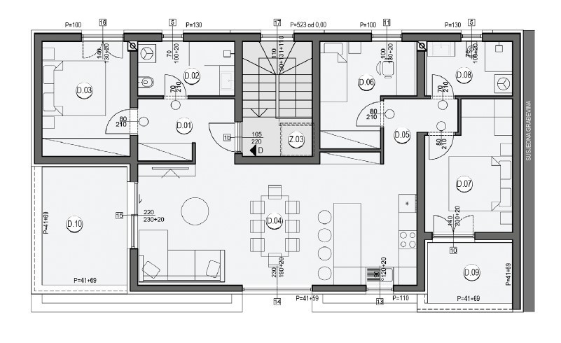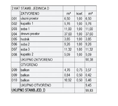 L'appartamento D si trova al 2° piano dell'edificio A1 e si compone di: ingresso, soggiorno con cucina e zona pranzo, 3 camere da letto, 2 bagni, corridoio, 2 balconi.