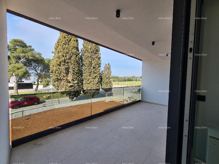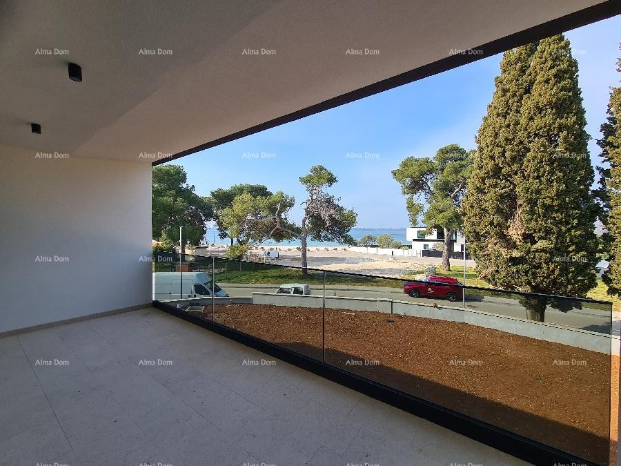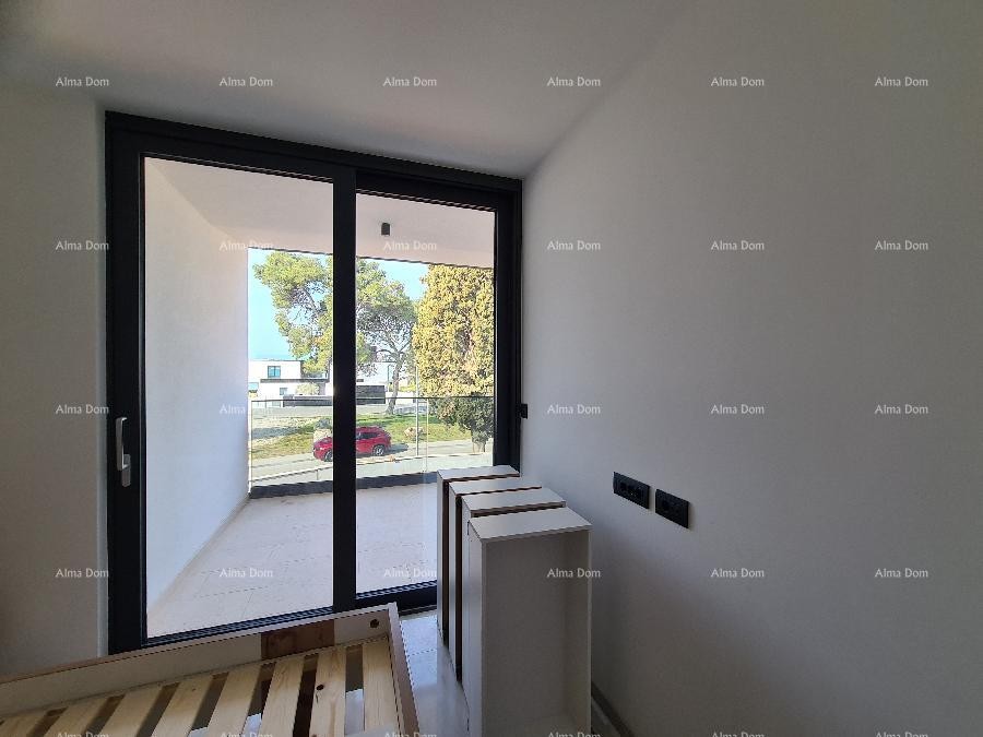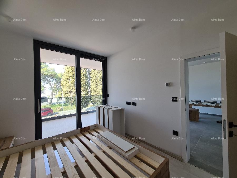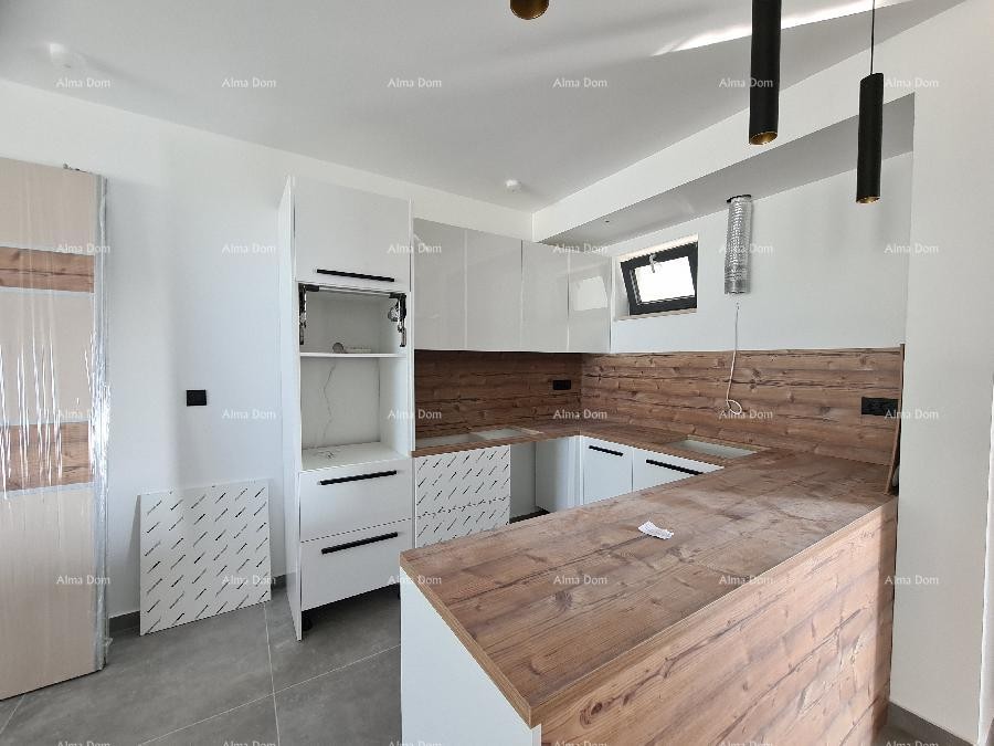 U Fažani, u neposrednoj blizini plaže, prodajemo prekrasan stan od 86 m² s velikim dnevnim boravkom koji uključuje kuhinju i blagovaonicu s izlazom na veliku natkrivenu terasu s pogledom na more i plažu, spavaćom sobom s vlastitim kupatilom i zasebnim WC-om. Iz spavaće sobe se izlazi na veliku terasu.