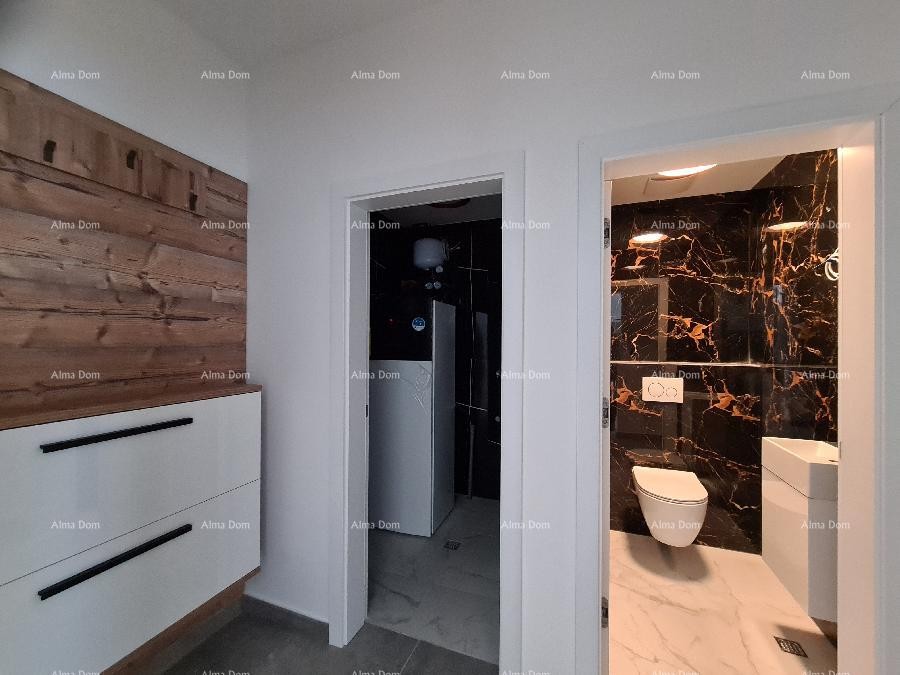 Stanovi imaju podno grijanje i ugrađenu centralnu klimu. Zasebna prostorija za bojler - toplinska pumpa. Stan je potpuno moderno namješten, opremljen od slovenske tvrtke koja ima svoju proizvodnju, odmah useljiv.