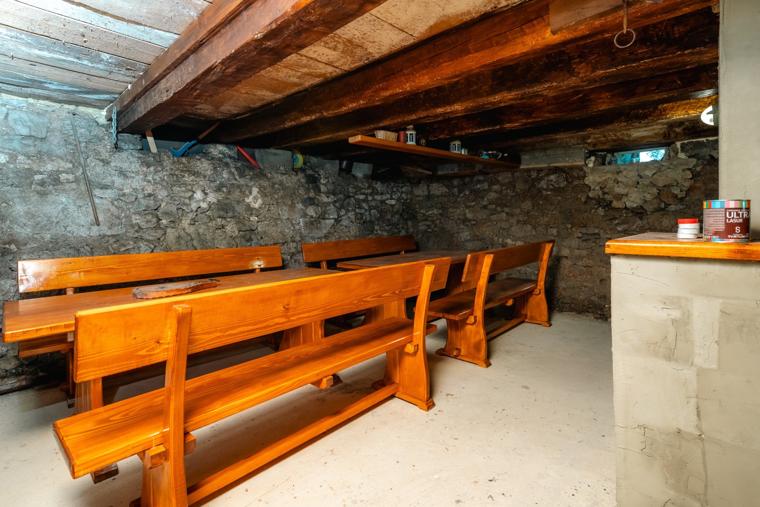 V kleti se nahaja prostor v slogu konobe, primeren za vinoteko, prostor za druženje ali wellness prostor.