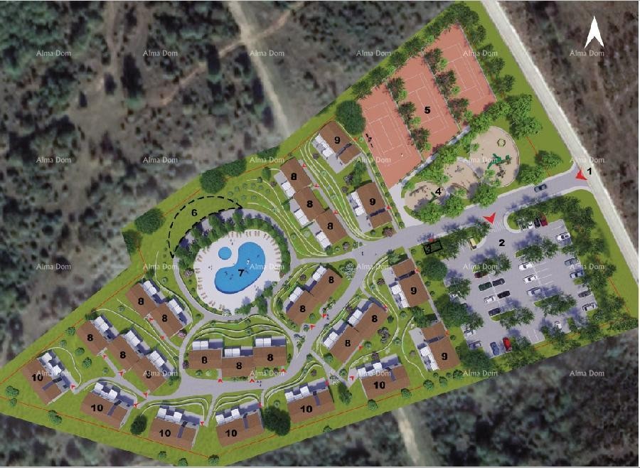 Nahaja se naselje z več nastanitvenimi enotami (120 ležišč), ima restavracijo, bazen, teniška igrišča, otroško igrišče, parkirna mesta.