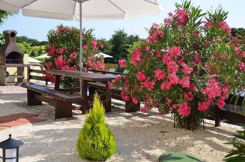 Na vrtu pred objektom se nahaja bazen (50 m2) s teraso za sončenje in parkirišče za 13 avtoilov.