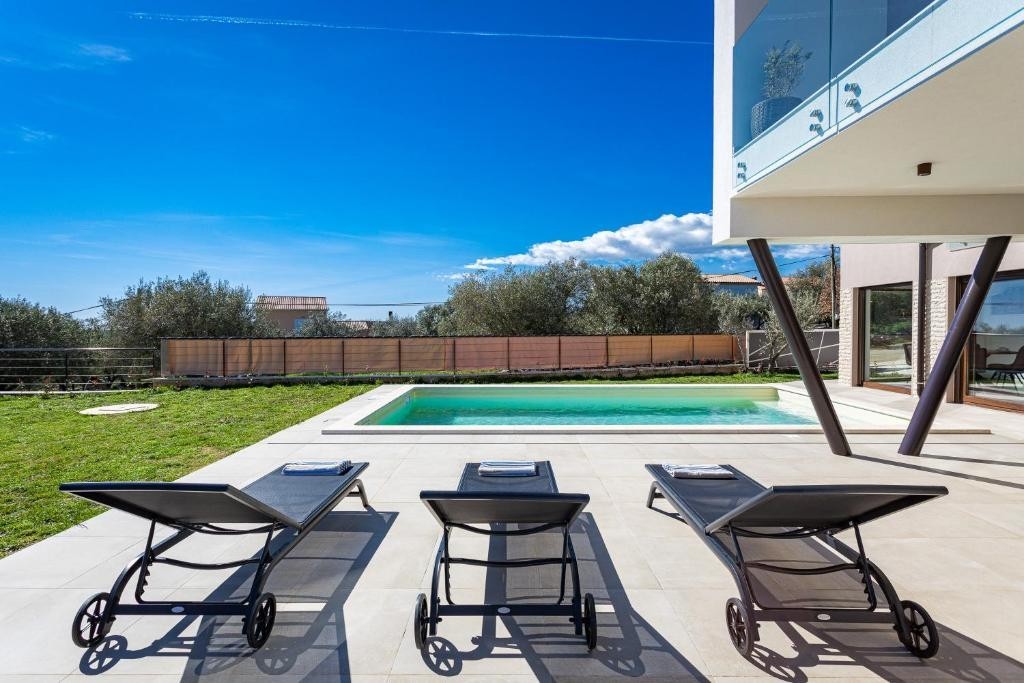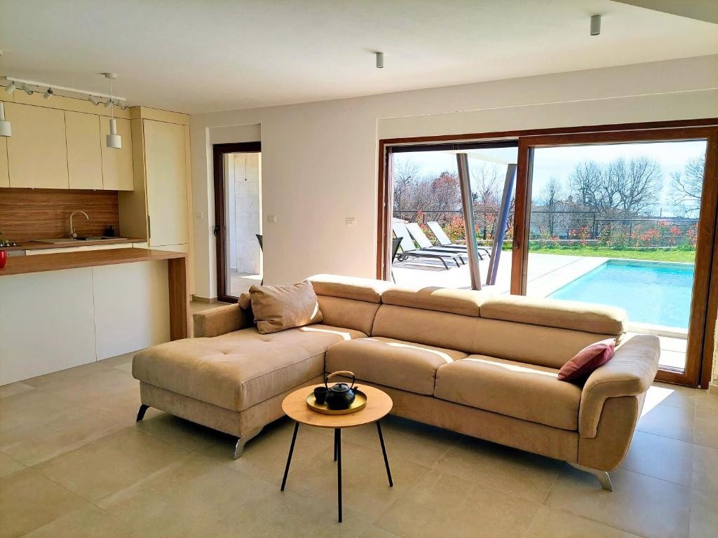 Hiša je sestavljena iz odprtega prostora v pritličju s kuhinjo, jedilnico, straniščem in dnevno sobo, ki vodi do pokrite terase z žarom in vrta z bazenom.