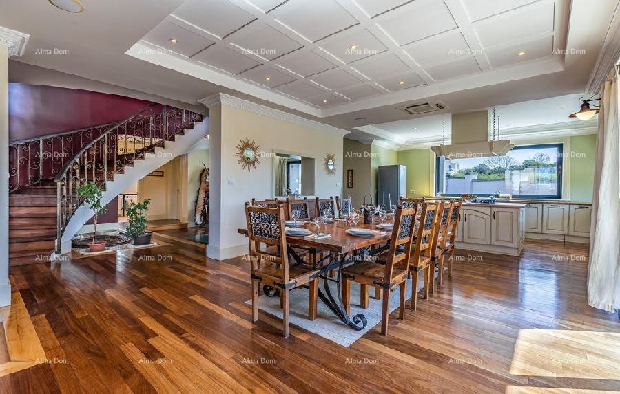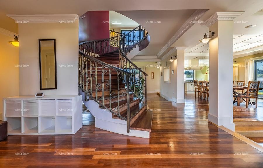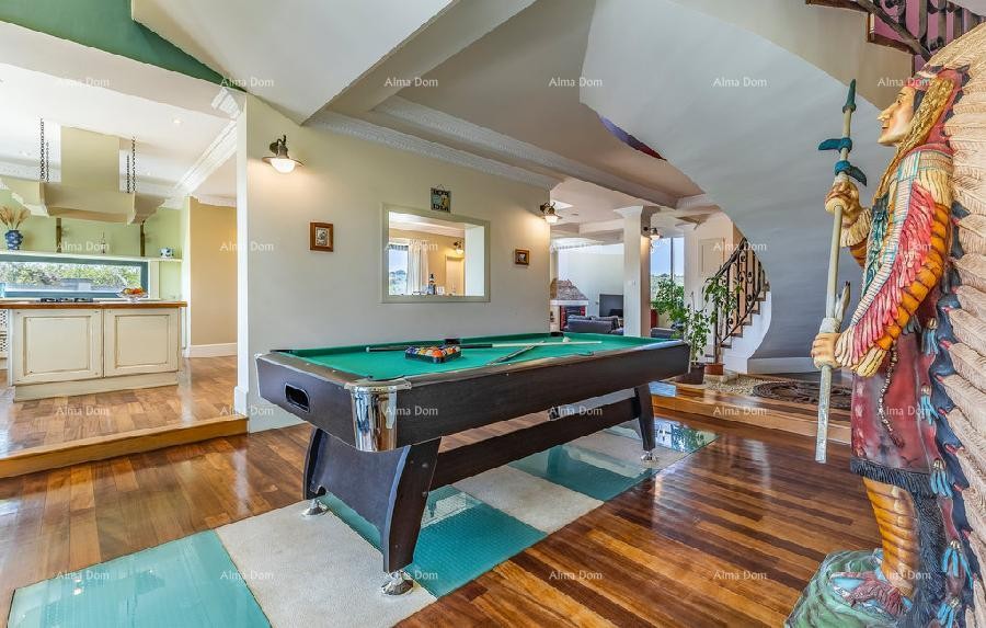 V pritličju vile je prostorna dnevna soba z biljardom in namiznim tenisom, kuhinja, pisarna, ena kopalnica in stopnišče, ki vodi v višje nadstropje.