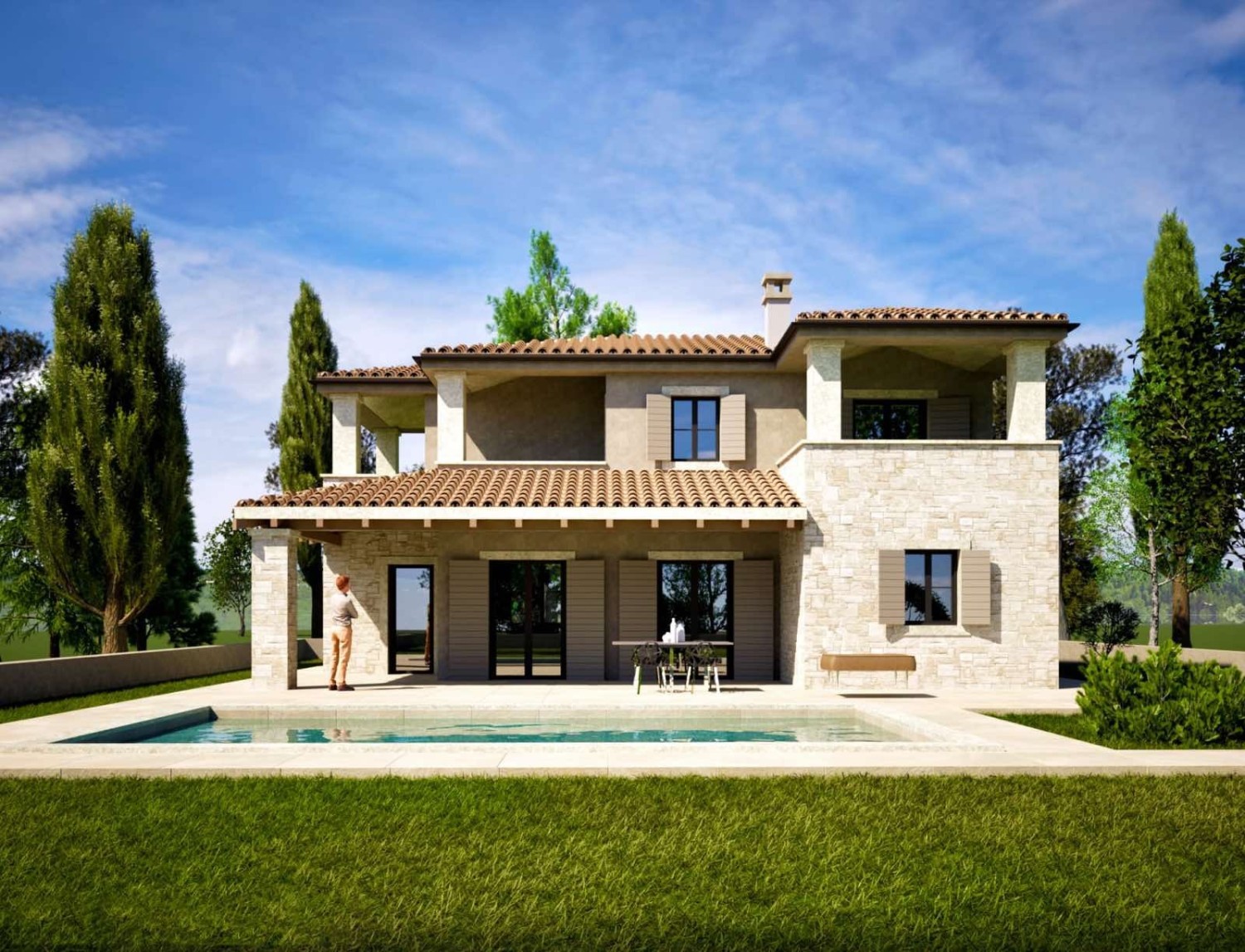 Na prodajo je lepa nova hiša s bazenom, nameščena v mirnem delu Kaštelira, z odprtim pogledom proti morju.