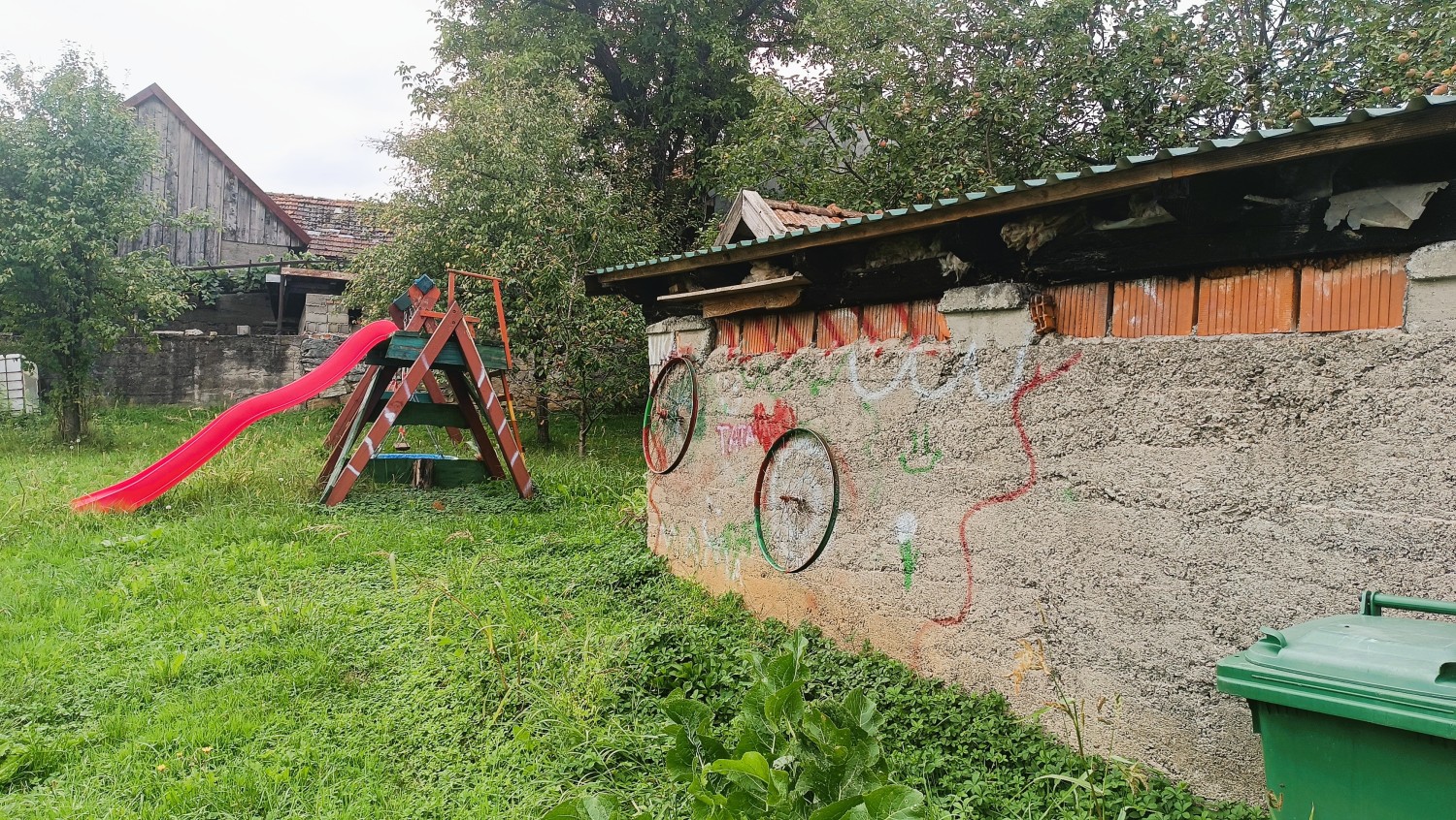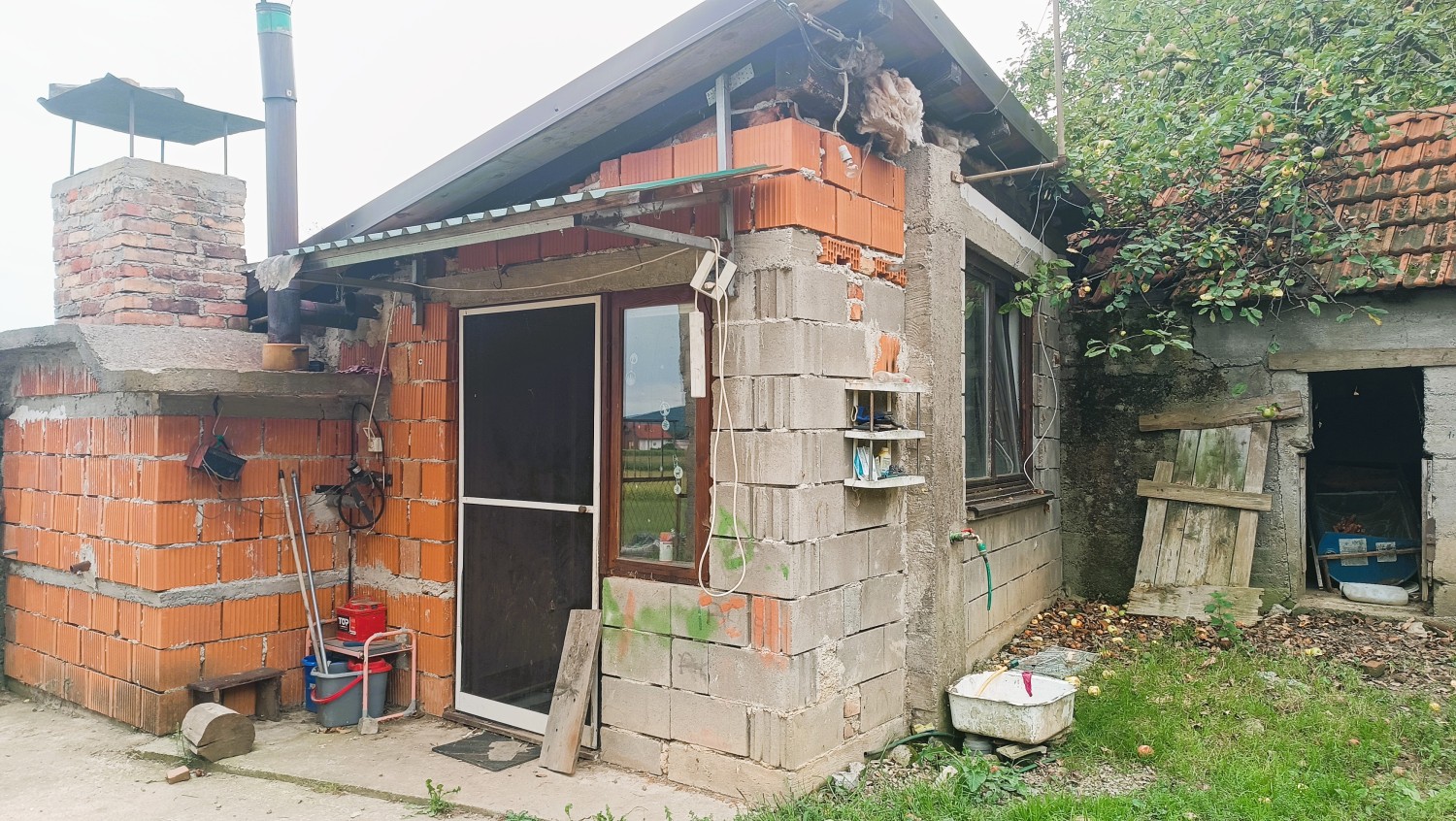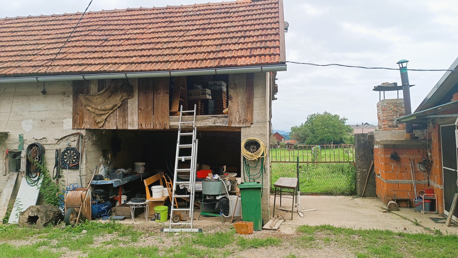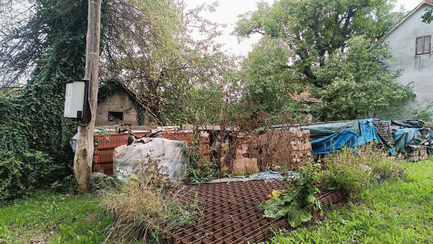 Skupaj z zemljiščem pridejo tudi gradbeni materiali (les, strešniki, mreže, dimnik itd.)