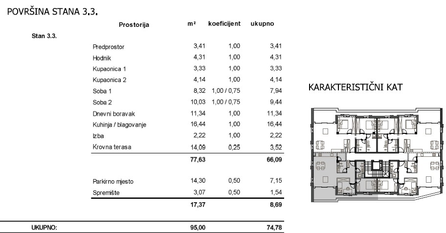 Stanovanje z oznako 3.3 ima funkcionalno razporeditev in je sestavljeno iz: