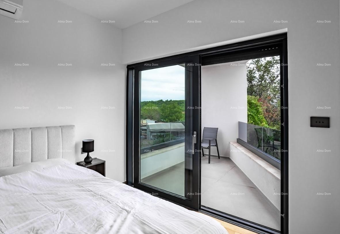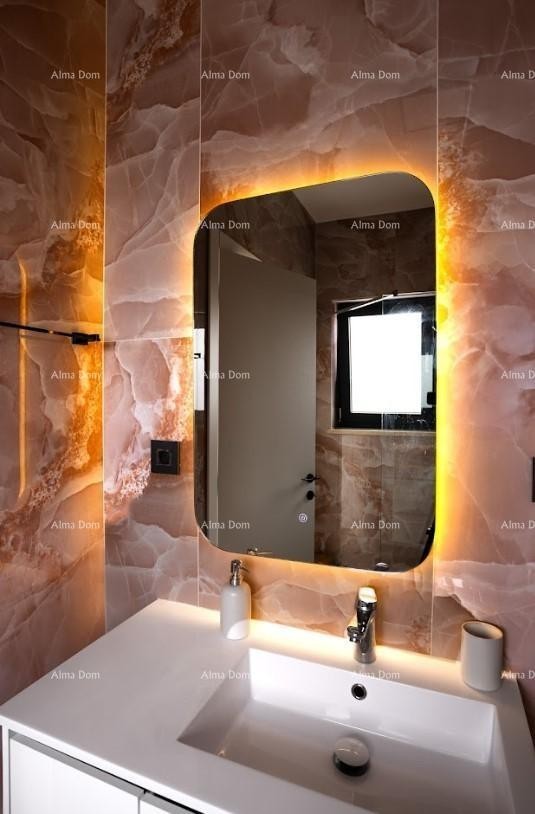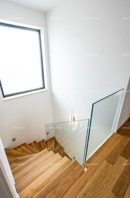 V pritličju se nahajajo tehnična soba, kopalnica, prostorna dnevna soba s jedilnico in kuhinjo. Velike prostorne stene nudijo pogled na zunanjo teraso in bazen.