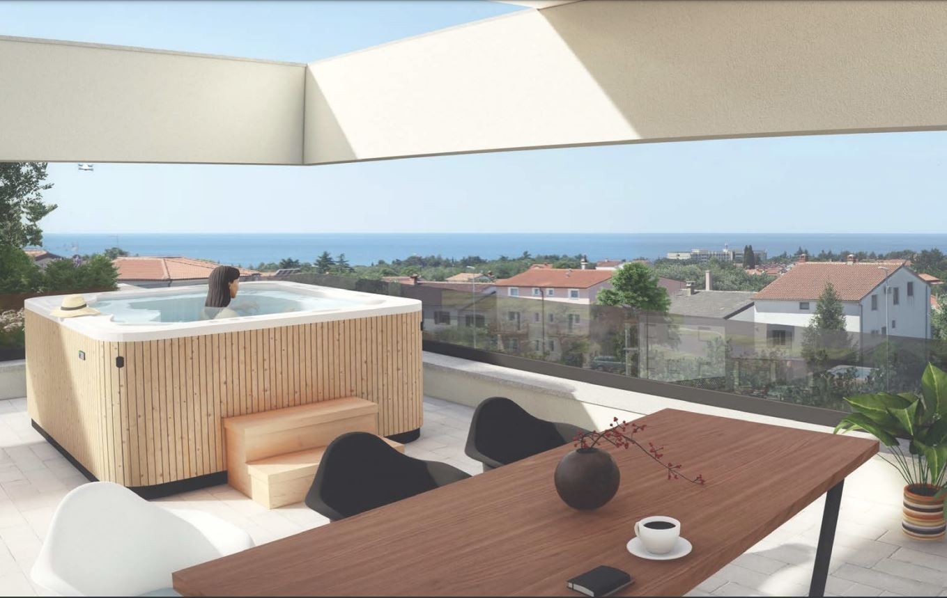 Torej, stanovanje ima tlorisno površino 270 m2, od katerih je bivalni zaprti del 132,95 m2, preostalo pa je terasa s čudovitim pogledom na morje v 180 stopinjah.